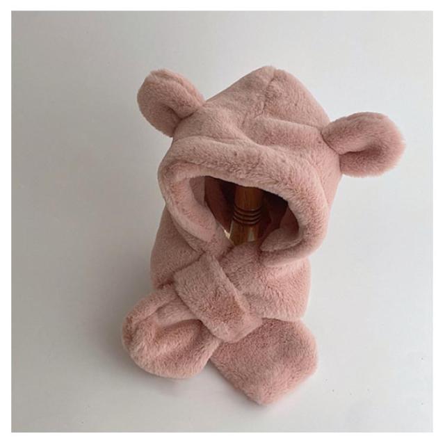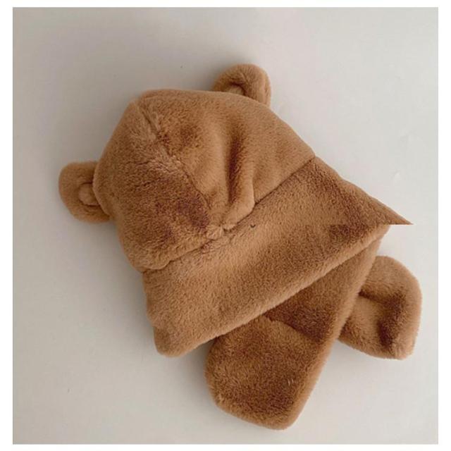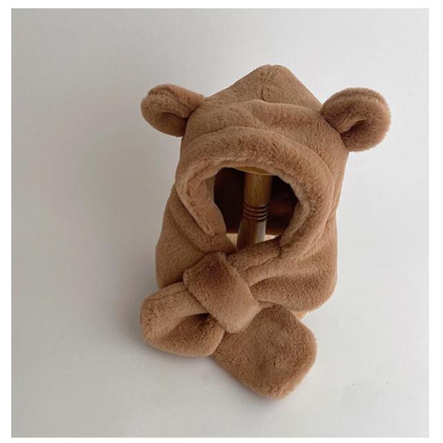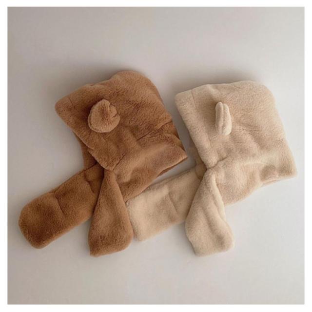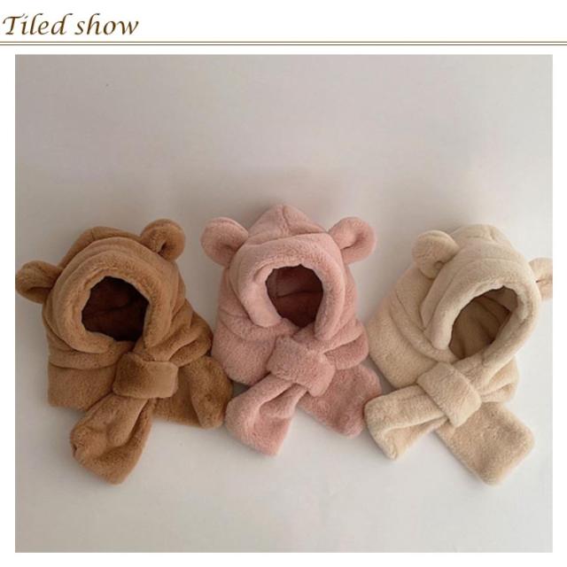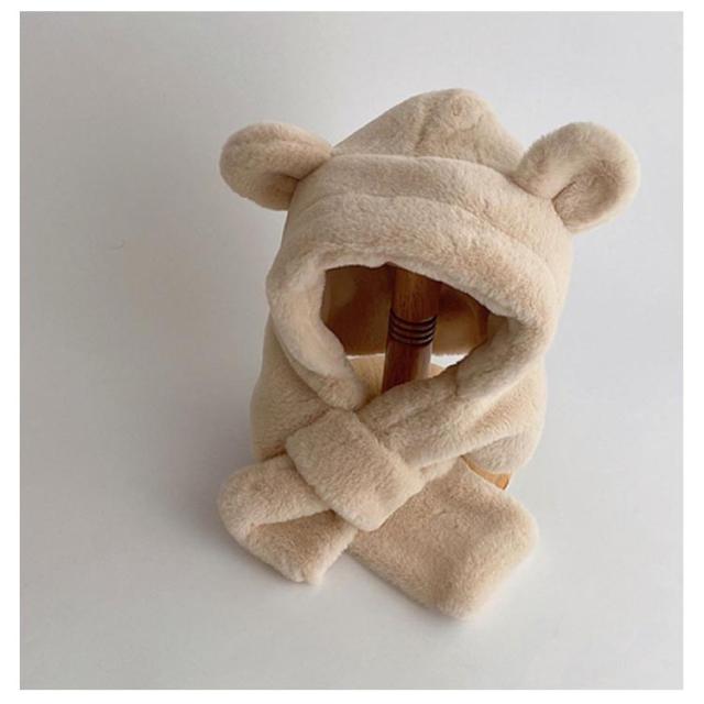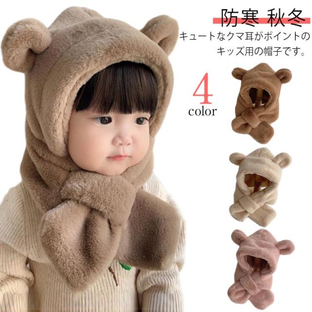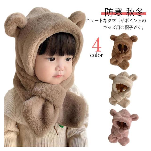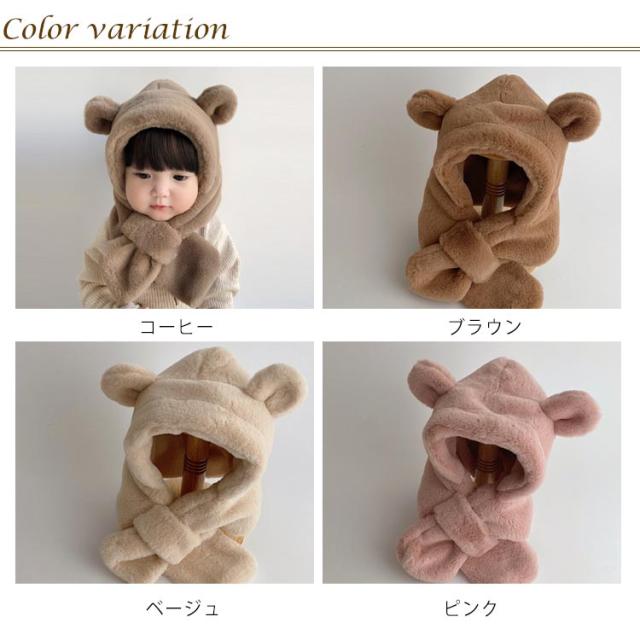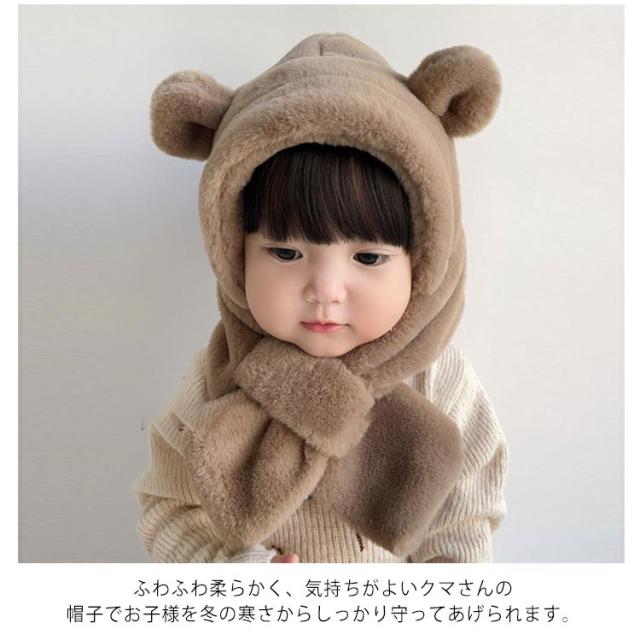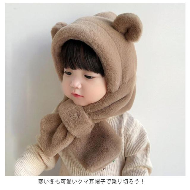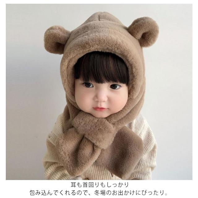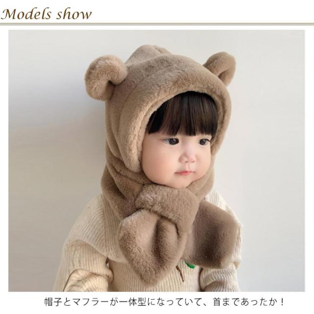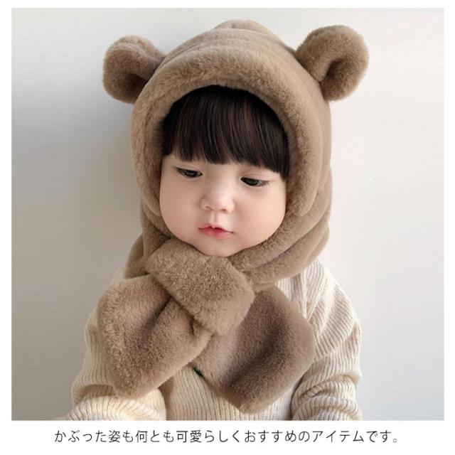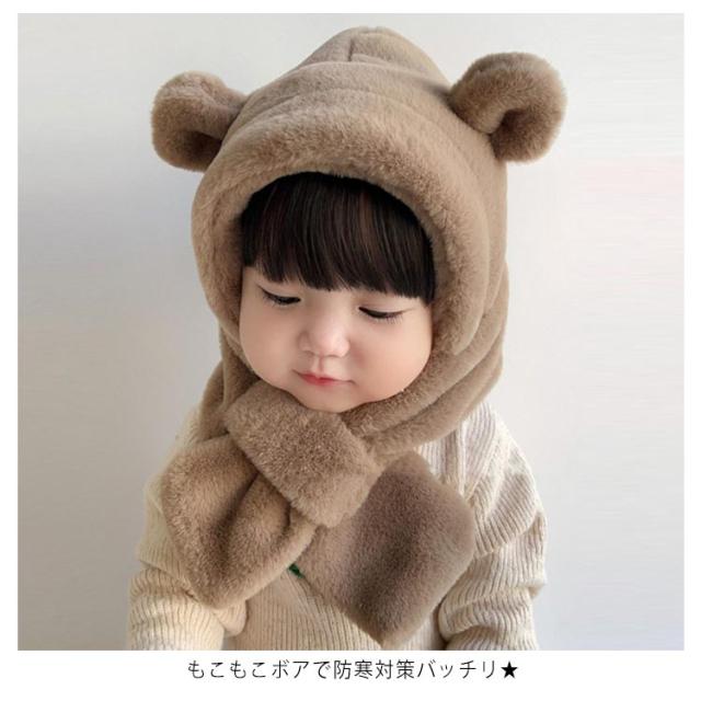 キッズ 帽子 ネックウォーマー 一体型 ぼうし マフラー付き 子供用 大人用 裏ボア ふわふわ もこもこ 裏起毛 暖かい 冬用 帽子 耳当て くま耳 フードウォーマー 可愛い お洒落 女の子 男の子 ベビー キッズ帽子 防寒 保温 送料無料