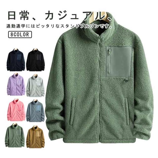 ボアジャケット メンズ レディース ボアブルゾン ジャケット フリースジャケット 大きいサイズ アウター 冬服 防寒 もこもこ 厚手 フルジップ カジュアル 男女兼用 韓国風 スポーツ 送料無料