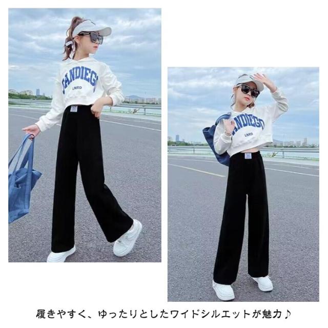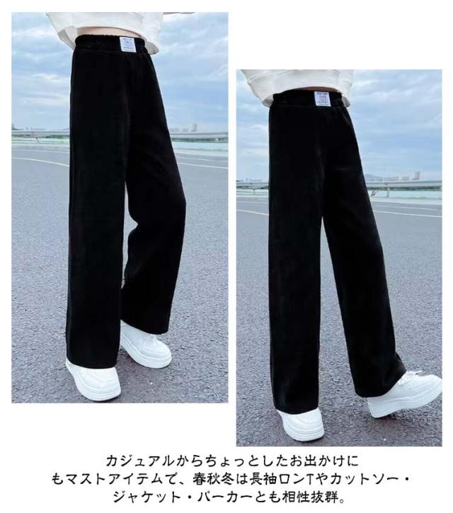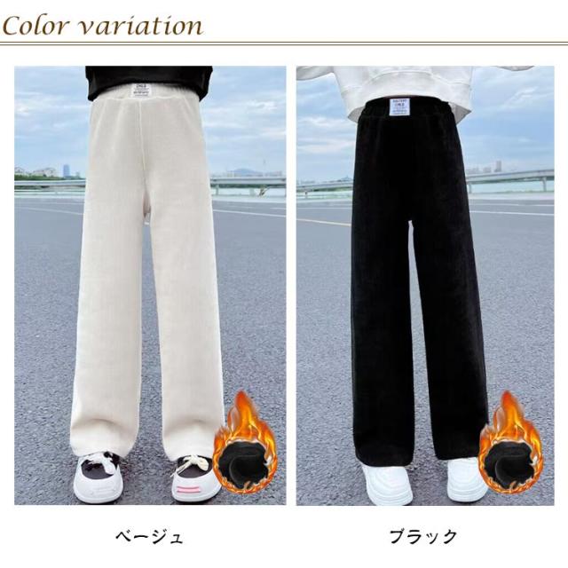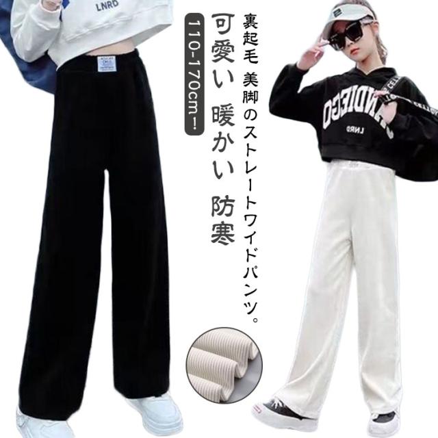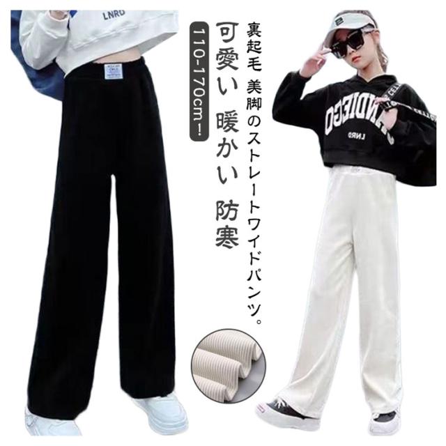 ワイドパンツ キッズ 女の子 ガウチョパンツ キッズ 裏起毛パンツ 裏起毛 裏フリース ジュニア ロングパンツ ストレートパンツ ウエストゴム ボトムス 厚手 防寒 暖かい あったか パンツ リブ 無地 ゆったり カジュアル 春 秋 冬 冬服 親子 お揃い 110-170cm 送料無料