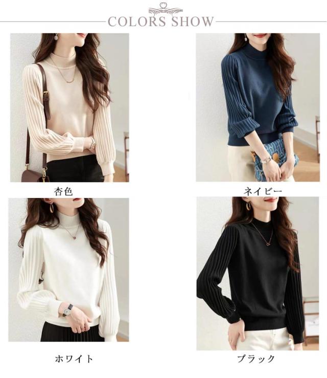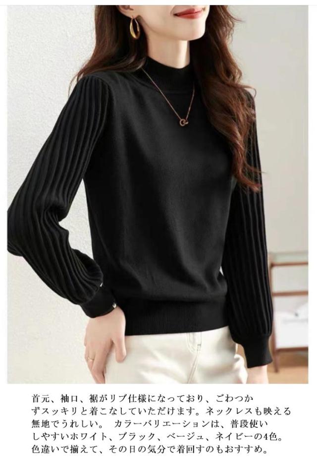 送料無料 ハーフタートルネック ニット セーター レディース プリーツ トップス ニットトップス パフスリーブ 長袖 M L ボリュームスリーブニット 袖コンシャス ボリュームスリーブ 秋 冬 秋冬 S XL