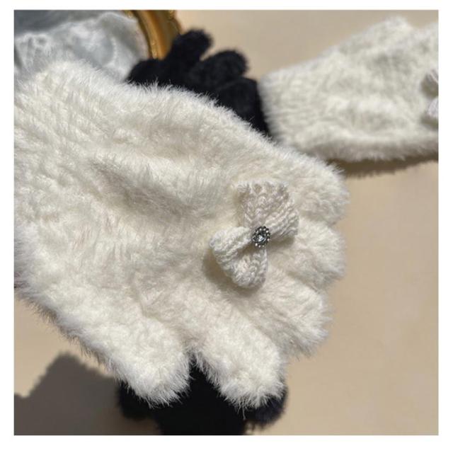 手袋 キッズ 女の子 子供 かわいい 暖かい マシュマロタッチ リボン ラインストーン キラキラ 手袋 キッズ 女の子 手袋 小学生 幼稚園 女の子 5歳 6歳 7歳 子供 キッズ リボン 5本指 裏起毛 あったかい あったか 防寒 ブラック 黒 キラキラ かわいい 可愛い