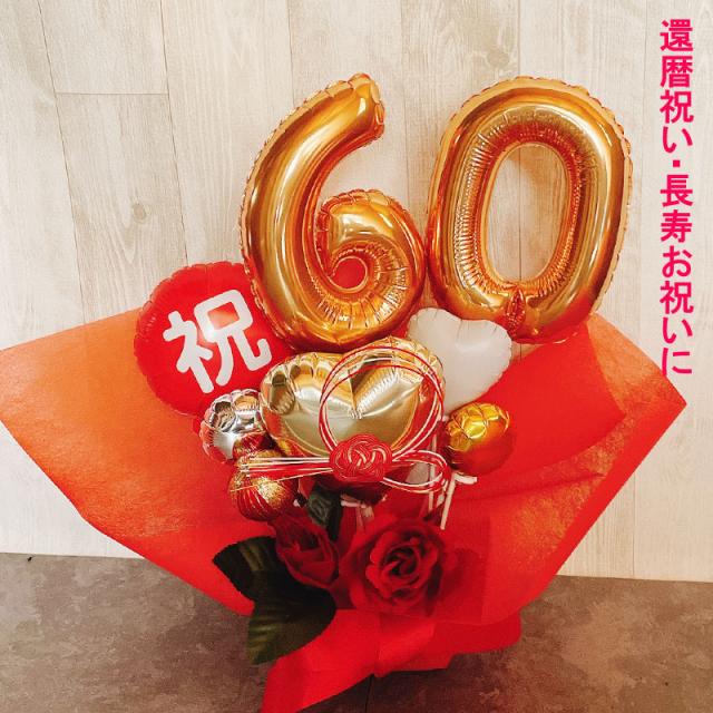 還暦 誕生日 バルーン 還暦祝い バルーンギフト バルーンアレンジ おしゃれ 豪華 電報 赤 60歳 長寿 結婚祝い 卓上 お祝い 敬老の日 数字 プレゼント 男性 女性 バルーンフラワー