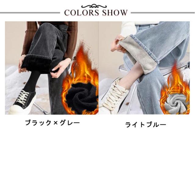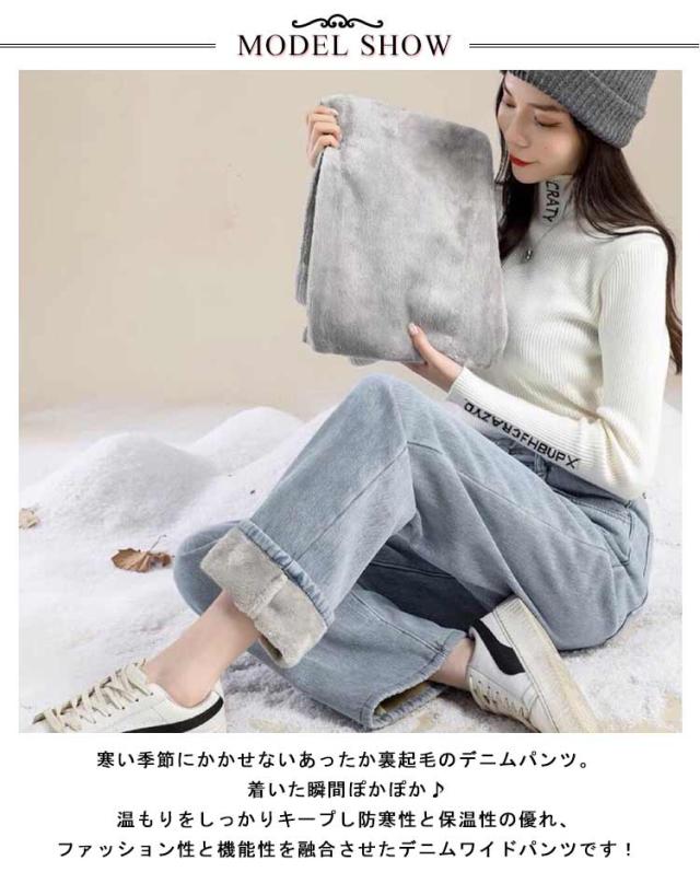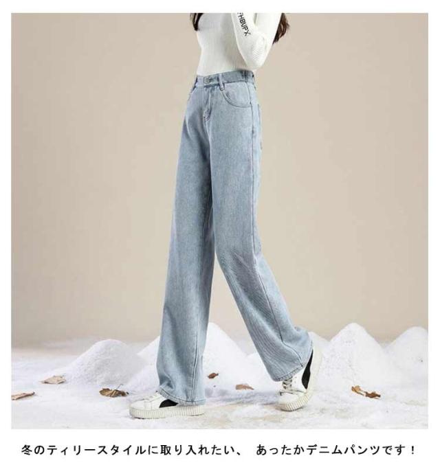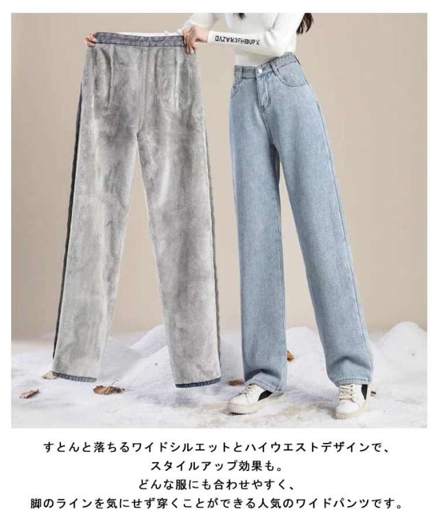 防寒パンツ あったか 厚手 裏起毛 ロングパンツ ポケット付き デニム ジーンズ ワイドパンツ ボトムス レディース 暖かい デニムパンツ ストレートパンツ ゆったり 大きいサイズ ジーパン ハイウエスト 脚長効果 長ズボン カジュアル レディース 秋冬