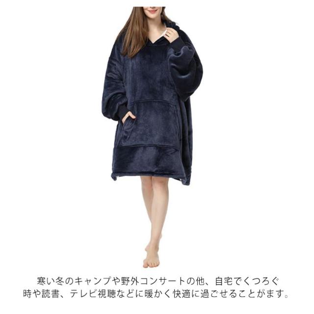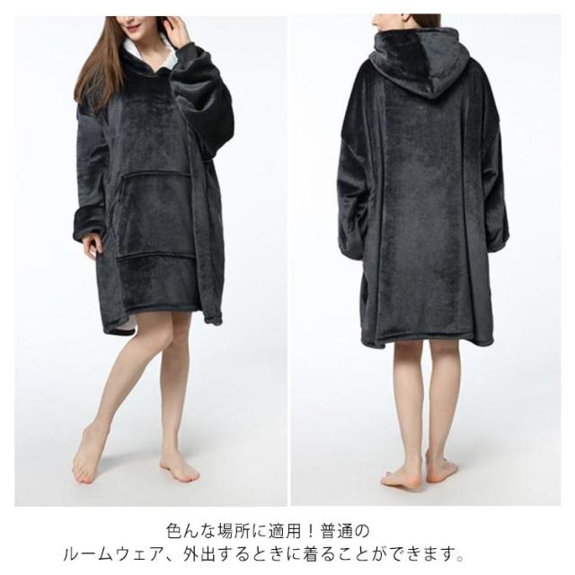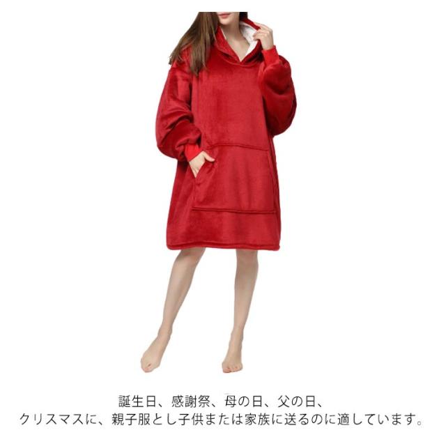 | 簡単に脱着できる究極のルームウェア「着るブランケットが登場!動きやすくて温かい究極のルームウェア。 フードの裏地がまだ暖かいシープボア素材であり、頭を温かく保ちます。 両サイドの大きいフロントポケットは手を暖かく保ち、おやつ、携帯電話、リモコンなどを入れることができ、収納力がたっぷり。 男女兼用のフリーサイズは、 座ると足まで包めるくらいには大きいです。 膝を抱えるとすっぽり収まりそうなゆったりとしたシルエットです。 寒い冬のキャンプや野外コンサートの他、自宅でくつろぐ時や読書、テレビ視聴などに暖かく快適に過ごせることがます。 色んな場所に適用!普通のルームウェア、外出するときに着ることができます。 誕生日、感謝祭、母の日、父の日、クリスマスに、親子服とし子供または家族に送るのに適しています。 | |