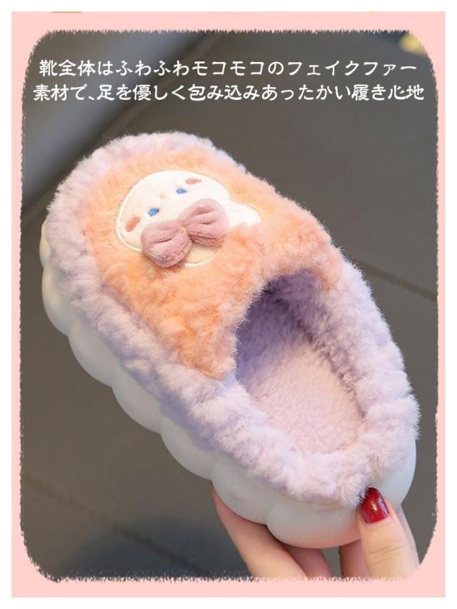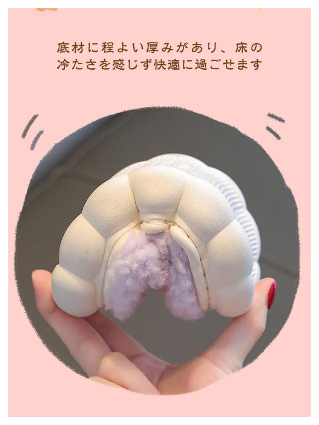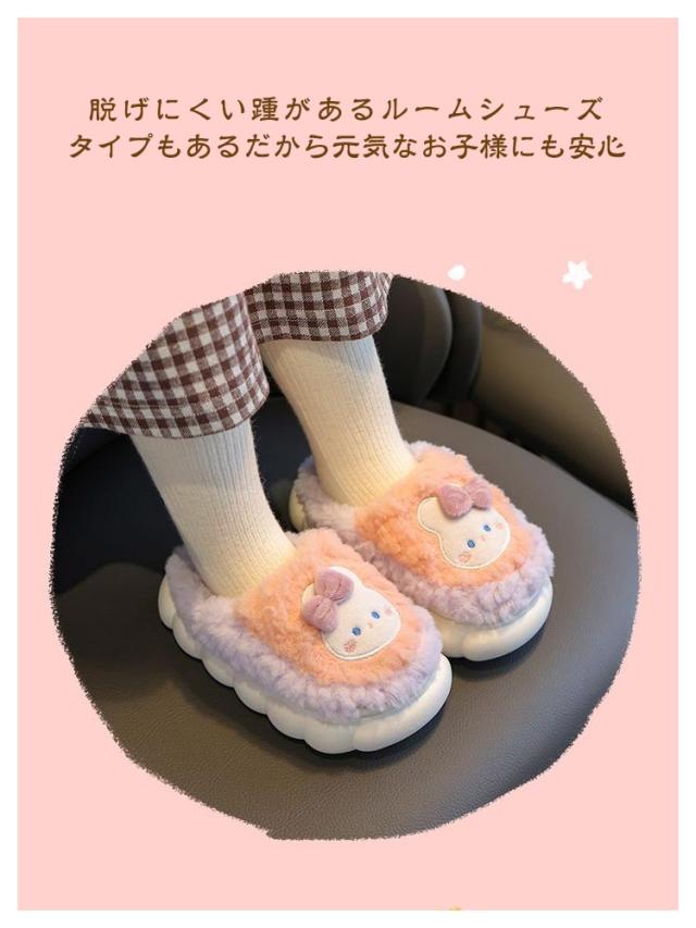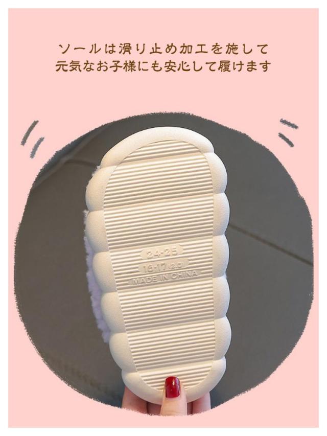 | 選べる2タイプ!もこもこあったかキッズルームシューズ 靴全体はふわふわモコモコのフェイクファー素材で、足を優しく包み込みあったかい履き心地。 脱げにくい踵があるルームシューズタイプもあるだから元気なお子様にも安心。 ソールは滑り止め加工を施して、元気なお子様にも安心して履けます。 底材に程よい厚みがあり、床の冷たさを感じず快適に過ごせます。 可愛くて暖かい、寒い季節の室内履きにぴったりです! | |