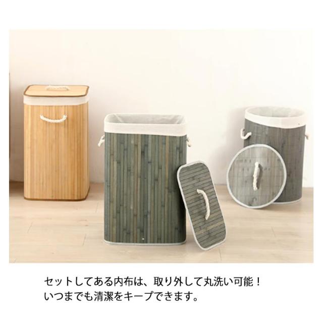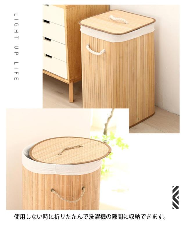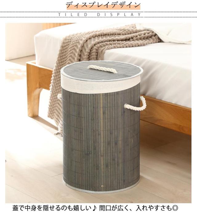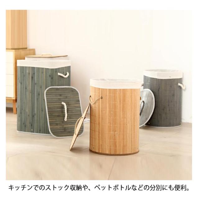 | どんなお部屋にも馴染むナチュラルデザインのランドリーバスケット。 蓋で中身を隠せるのも嬉しい♪ 間口が広く、入れやすさも◎ サイドにはナチュラルなロープハンドル付き、持ち運びも楽ちんです。 天然竹で作られた、水に強く、丈夫で耐久性に優れています。 使用しない時に折りたたんで洗濯機の隙間に収納できます。 セットしてある内布は、取り外して丸洗い可能!いつまでも清潔をキープできます。 キッチンでのストック収納や、ペットボトルなどの分別にも便利。 | |