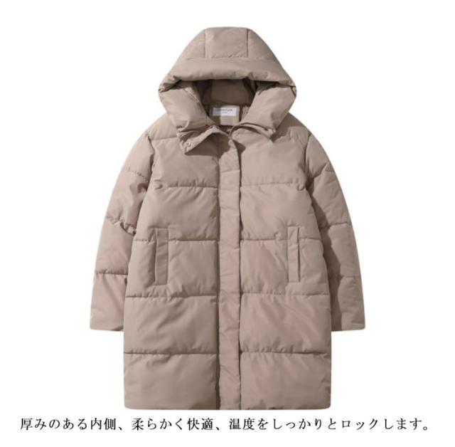 | カジュアルなフード付きロング丈ダウンジャケット 風を遮断し保温性を高めるスタンドカラーデザイン フード付きのデザインで保温性が向上、小顔効果もできます ネックラインはゴムバンドの引き紐デザインで、必要に応じて調整できます。 厚みのある内側、柔らかく快適、温度をしっかりとロックします。 | |