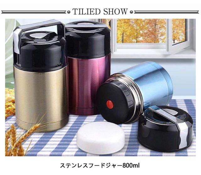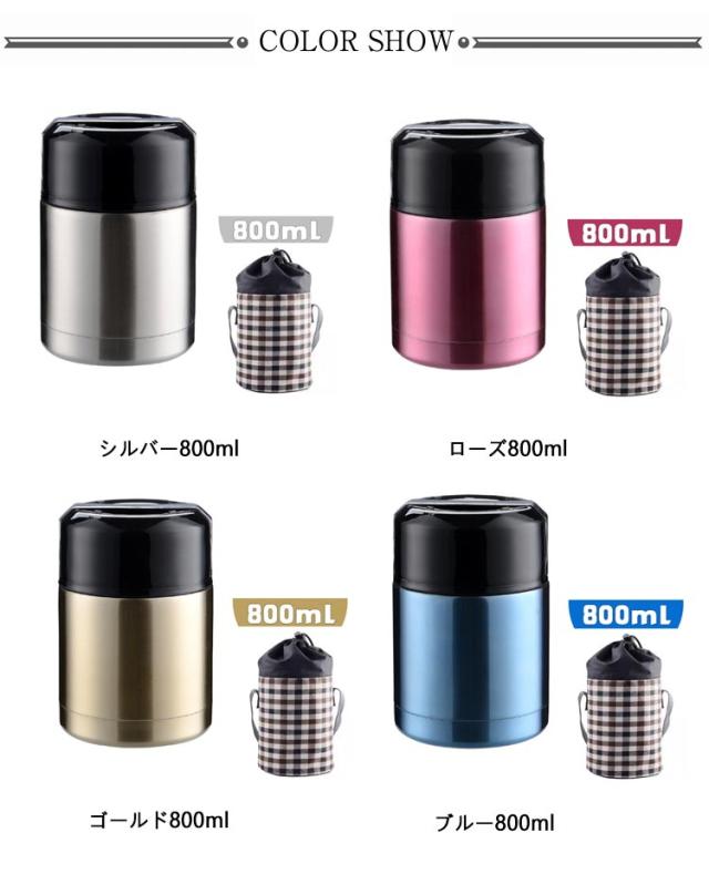 800ml ステンレスフードジャー シンプル お弁当箱 保温 フードマグ 大容量 密閉 保温ランチジャー スープジャー 魔法瓶 容器 おしゃれ 保冷