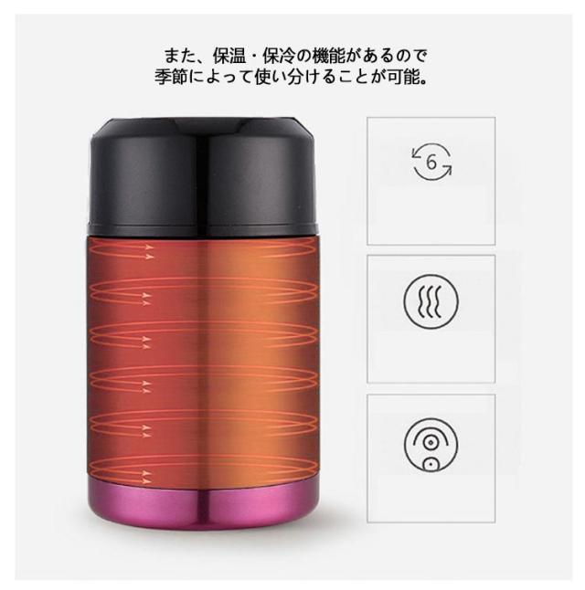 | ・ステンレスフードジャー800ml ・コンパクトサイズで女性の手にも優しく馴染む、丸みがかわいいフードジャーができました。 ・スープはもちろんシチューやお粥まで入れることができます。手軽に一品追加できるので、ランチタイムが充実! ・ランチタイムにはもちろん、ピクニックシーンなどでも活躍してくれます。 ・また、保温・保冷の機能があるので季節によって使い分けることが可能。 ・広口タイプでお料理が注ぎやすく、お食事時にも食べやすいサイズ。 ・本体丸洗いOK!お手入れ簡単で、清潔をキープできます。 | |