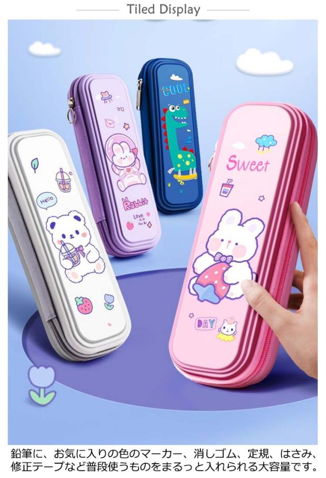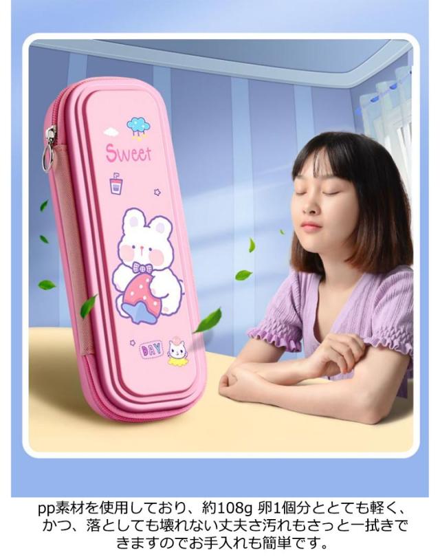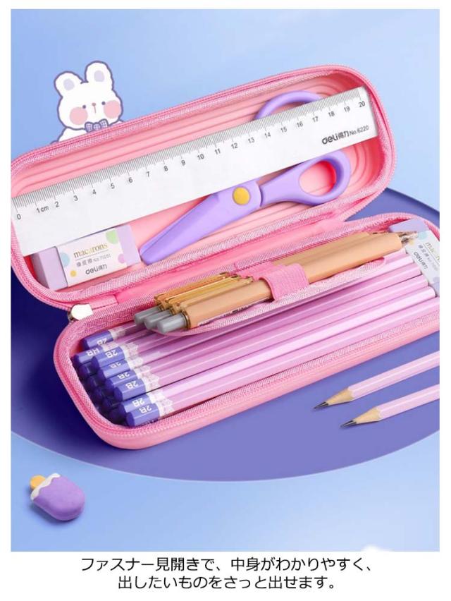 | かわいい大容量で機能性も申し分ないペンケースです 鉛筆に、お気に入りの色のマーカー、消しゴム、定規、はさみ、修正テープなど普段使うものをまるっと入れられる大容量です ファスナー見開きで、中身がわかりやすく、出したいものをさっと出せます pp素材を使用しており、約108g 卵1個分ととても軽く、かつ、落としても壊れない丈夫さ汚れもさっと一拭きできますのでお手入れも簡単です 入学、卒業、就職、などのプレゼントにも最適 | |