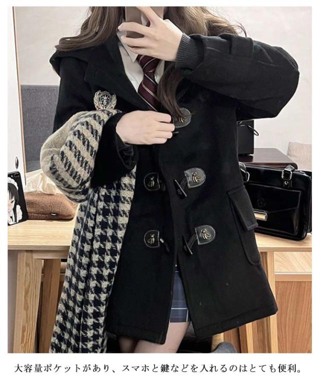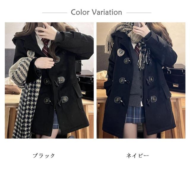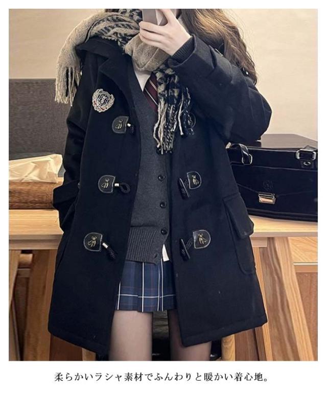 学院風コート スクールコート 秋冬 ダッフルコート 裏起毛 ゆったり アウター 紺 黒 防寒 秋冬アウター 通学 大きいサイズ ラシャコート 無地 おしゃれ レディース 保温 ロングコート 学生 制服 ダッフルコート 通勤 長袖 コート ジャケット ブラック ネイビー