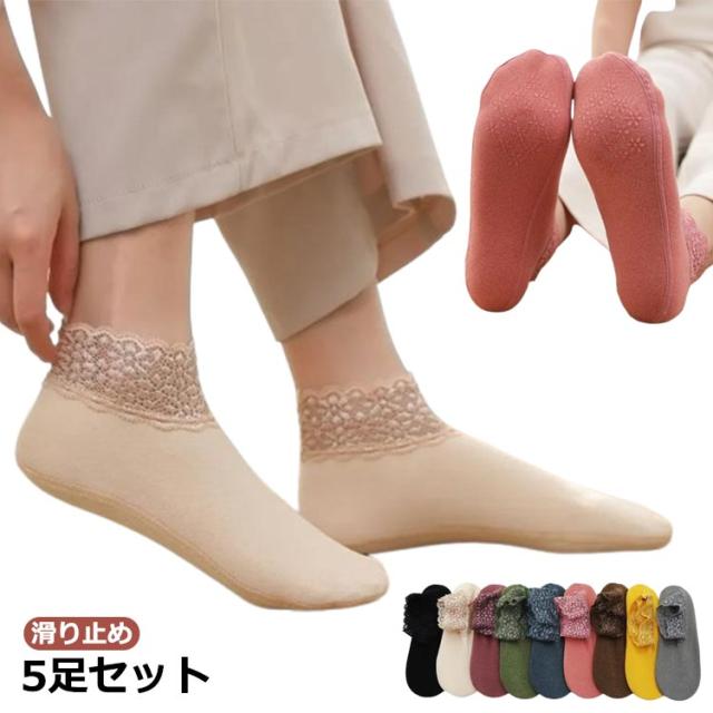 【5足セット】靴下 丈 あったか レース 暖かい ルームソックス ソックス ショート 滑りにくい 【5足セット】靴下 滑り止め フットカバー ソックス 5足セット 無地 シンプル