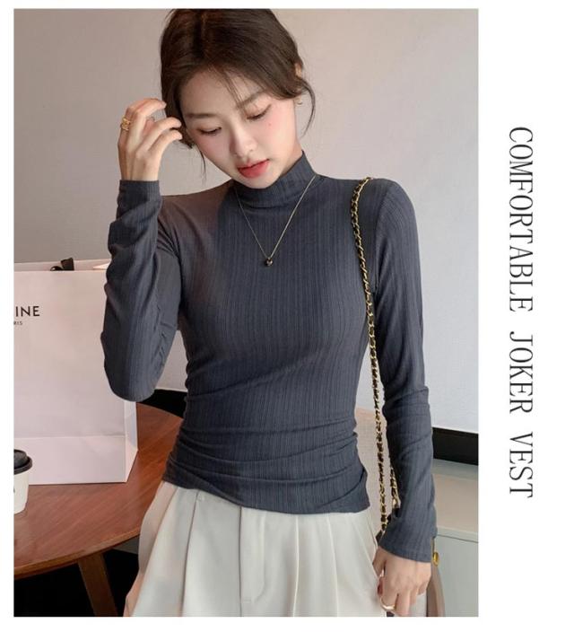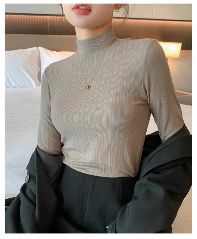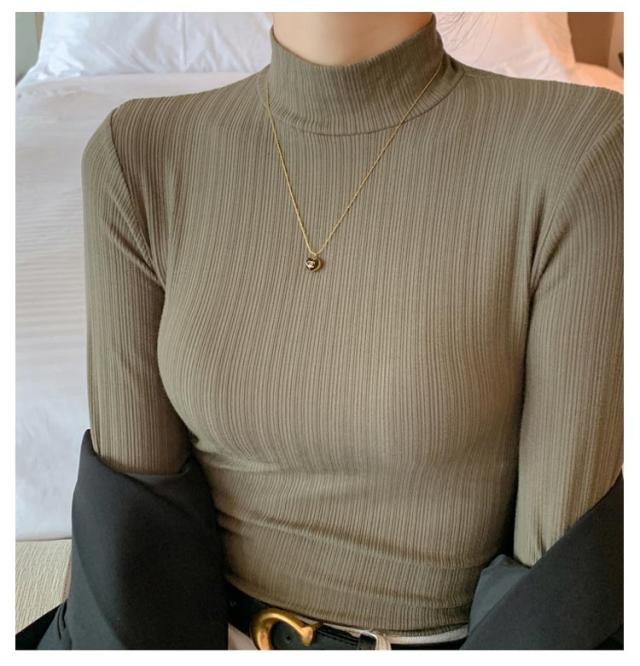 タートルネック レディース カットソー リブ ハイネック プチハイネック ストレッチ インナー 大人 定番 大きめ おしゃれ 長袖 トップス レディース レディース 無地 オフィス きれいめ コーデ 春 秋 冬
