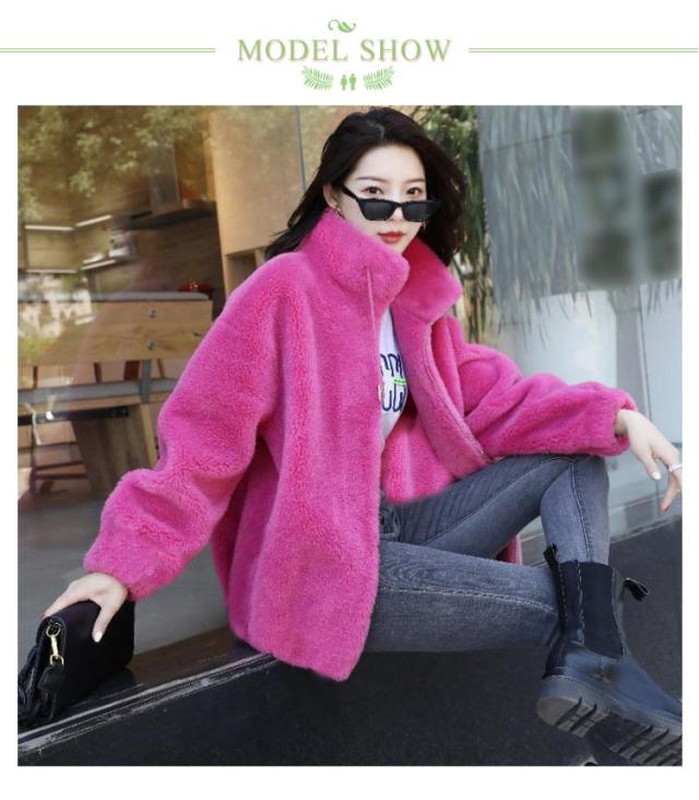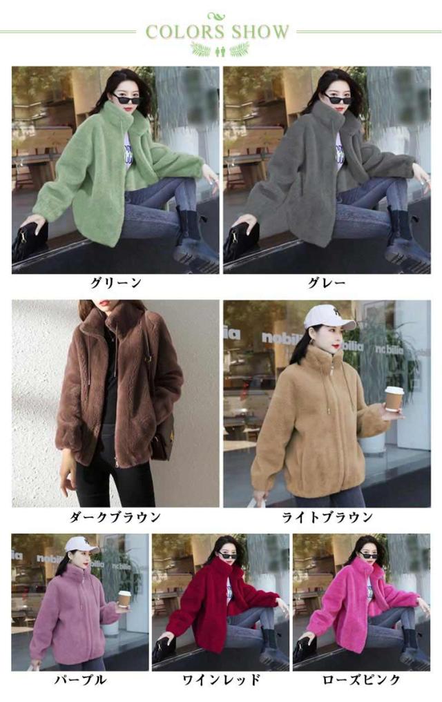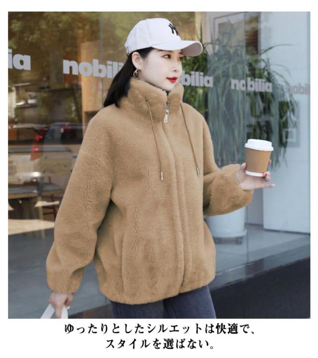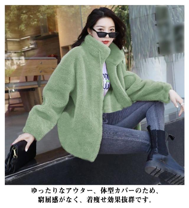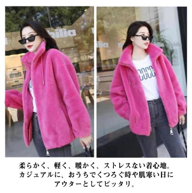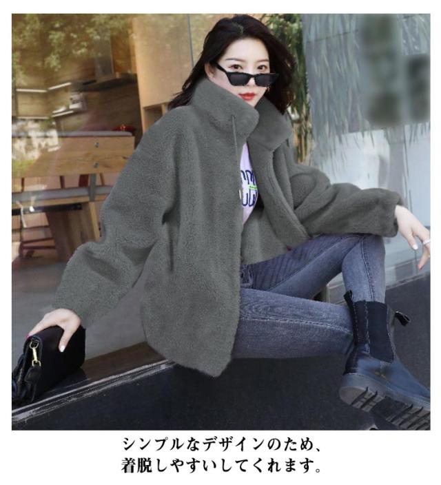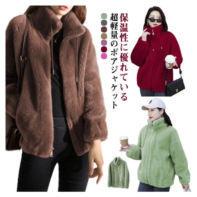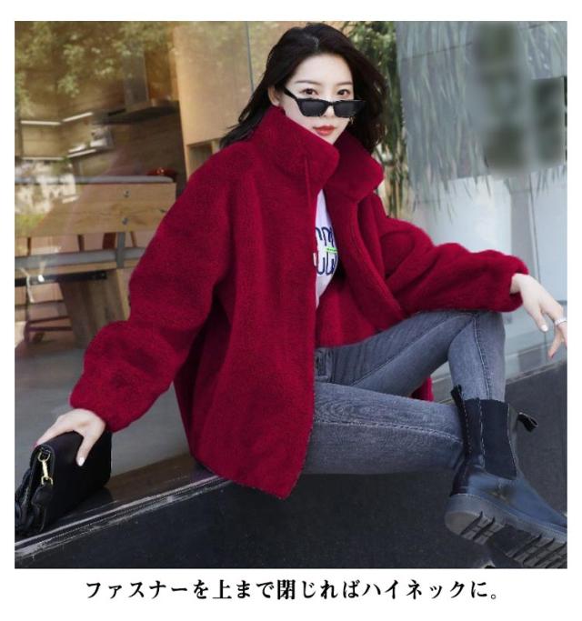 ボアジャケット レディース ボア ブルゾン ジャケット レディース ショート丈 ボアジャケット 立ち襟 暖かい コート 無地 もこもこ アウター 裏起毛 厚手 カジュアル パーカー ファッション 韓国系 防風 防寒 秋 冬
