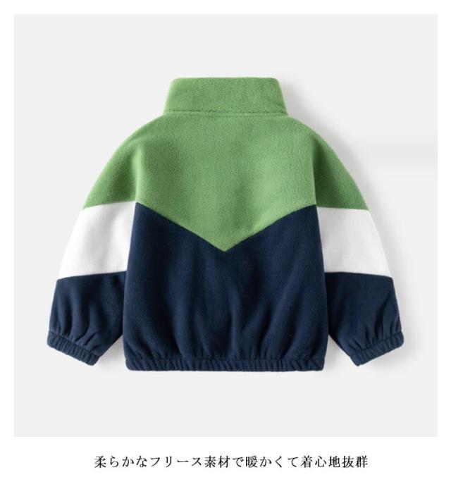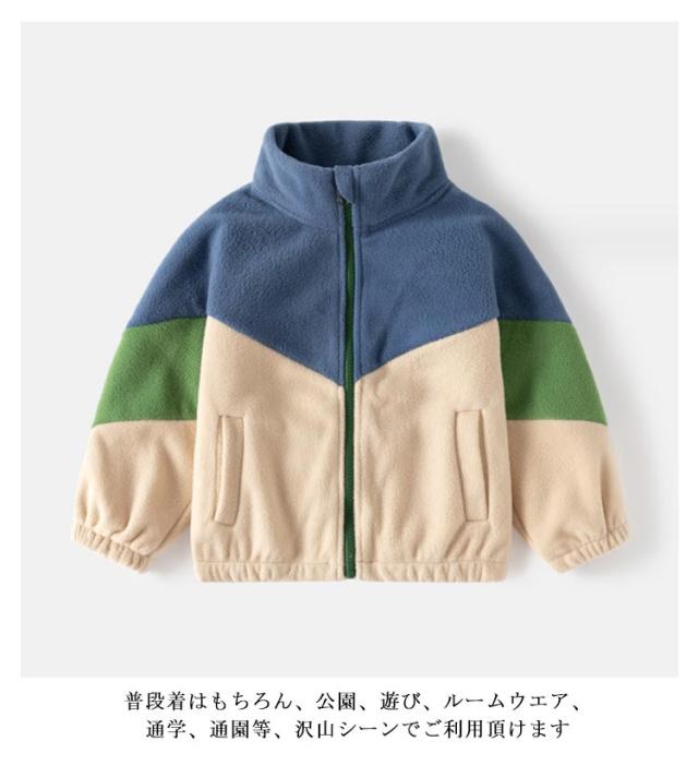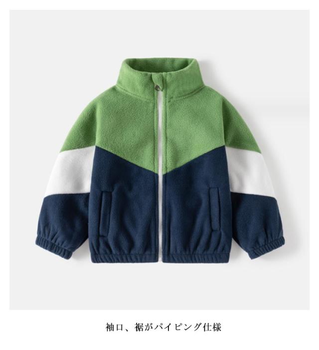 | 子供用フリースジャケット 袖口、裾がパイピング仕様 柔らかなフリース素材で暖かくて着心地抜群 普段着はもちろん、公園、遊び、ルームウエア、通学、通園等、沢山シーンでご利用頂けます | |
