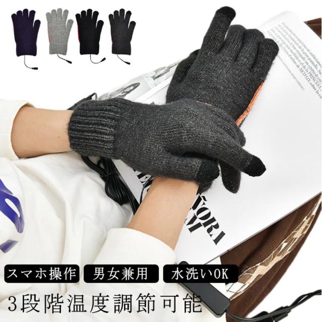 電気手袋 手袋 暖か手袋 3段階温度調節 USB ニット手袋 洗える ヒーター内蔵 ヒーターグローブ 両面加熱 室内手袋 ウォーマー 快速加熱 ハンドウォーマー スマートフォン対応 PC作業 男女兼用 寒さ対策 手袋 男女兼用 ギフト