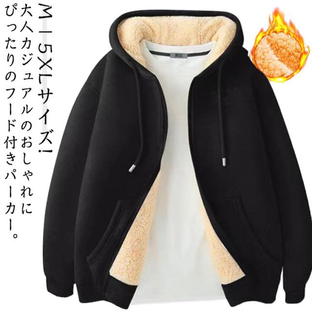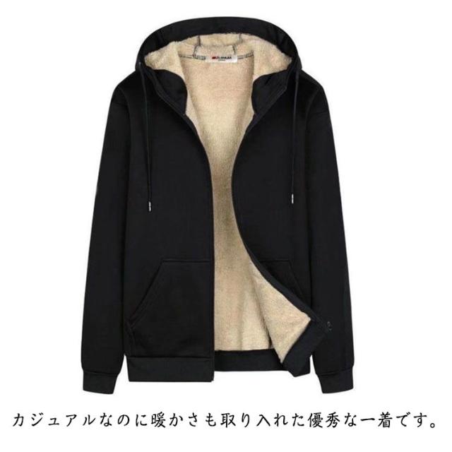防寒 裏起毛 裏ボア ジップパーカー メンズ 無地パーカー 長袖 フード付きパーカー ジップアップ 羽織 トップス あったか 厚手パーカー 春 秋 冬 スポーツ 部屋着