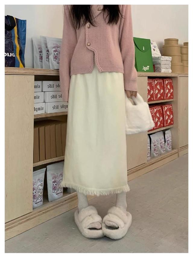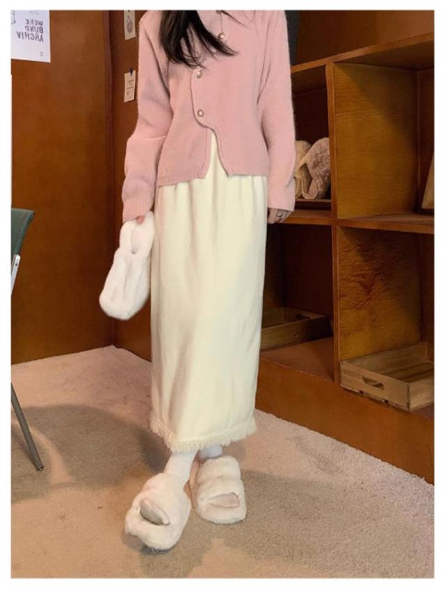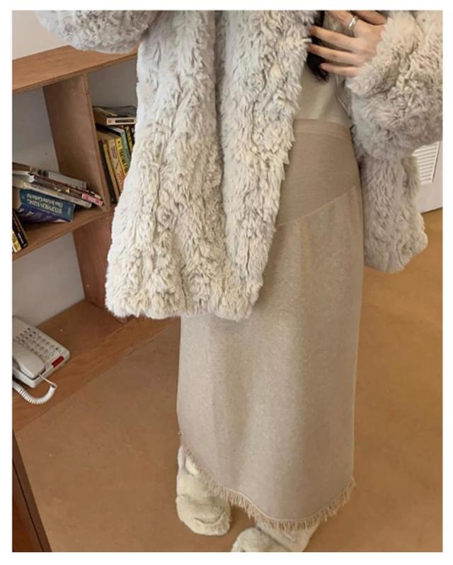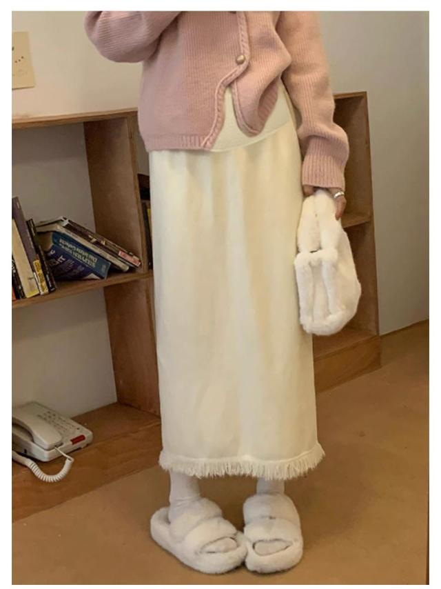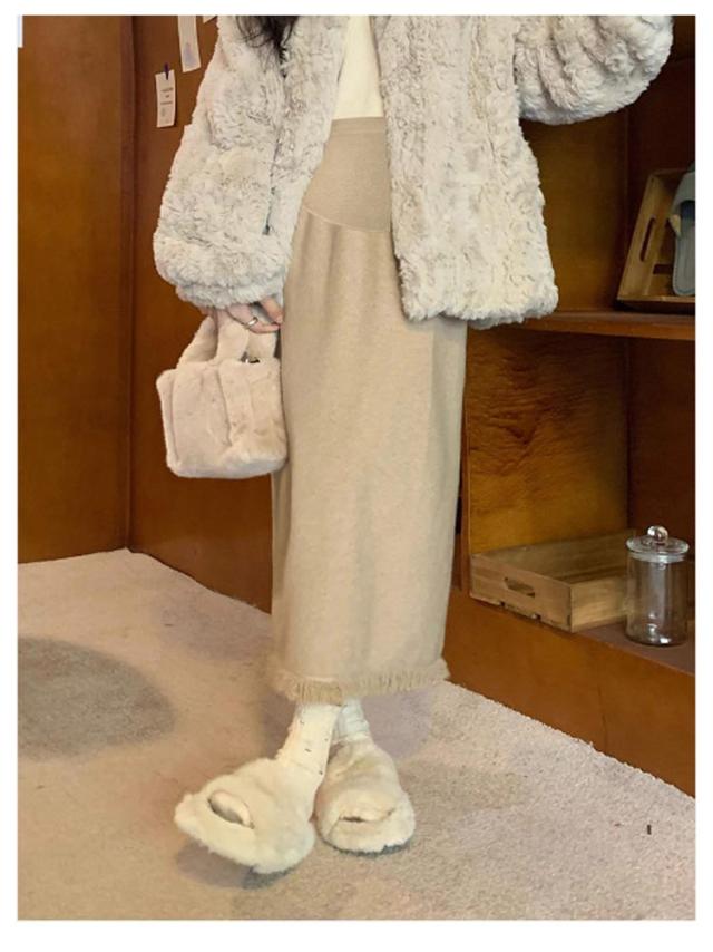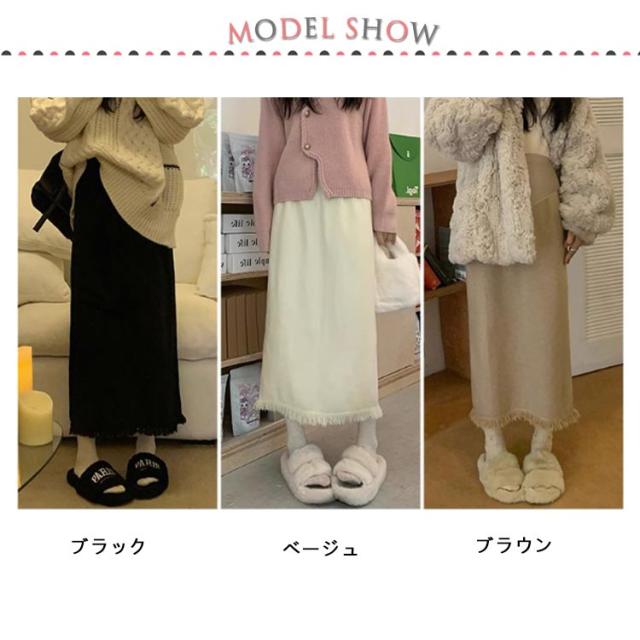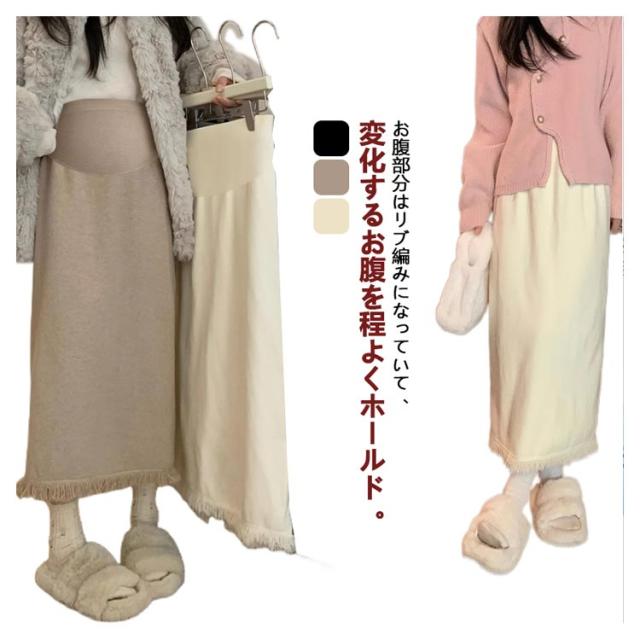 ミモレ丈 ゆったり ロング フリンジ マタニティ マタニティスカート ウエストゴム 無地 カジュアル 楽ちん ニットスカート マタニティ 産前 産後 春 秋
