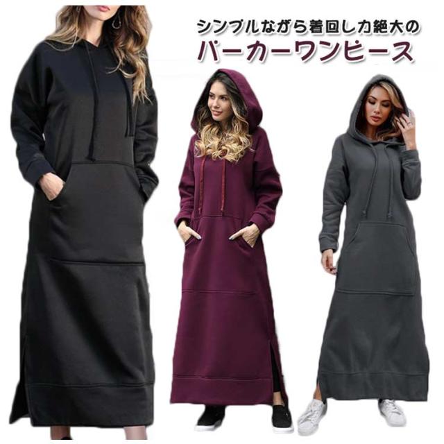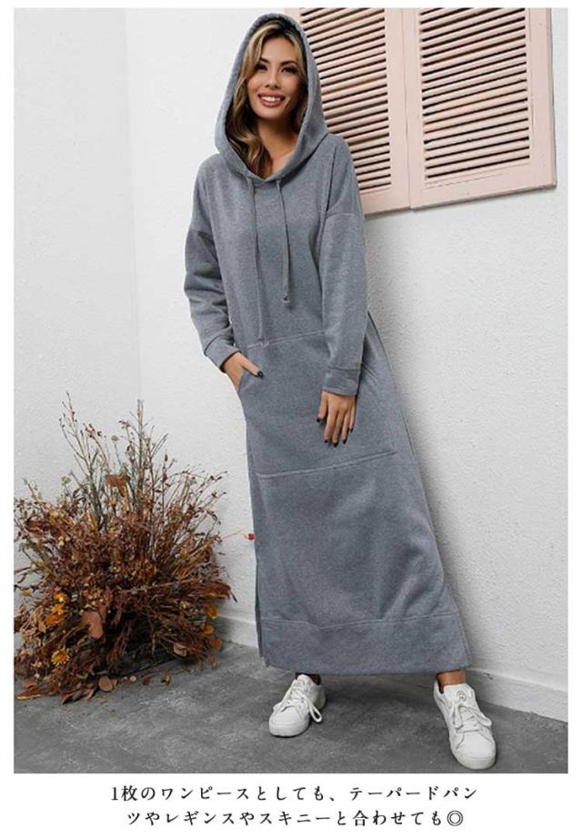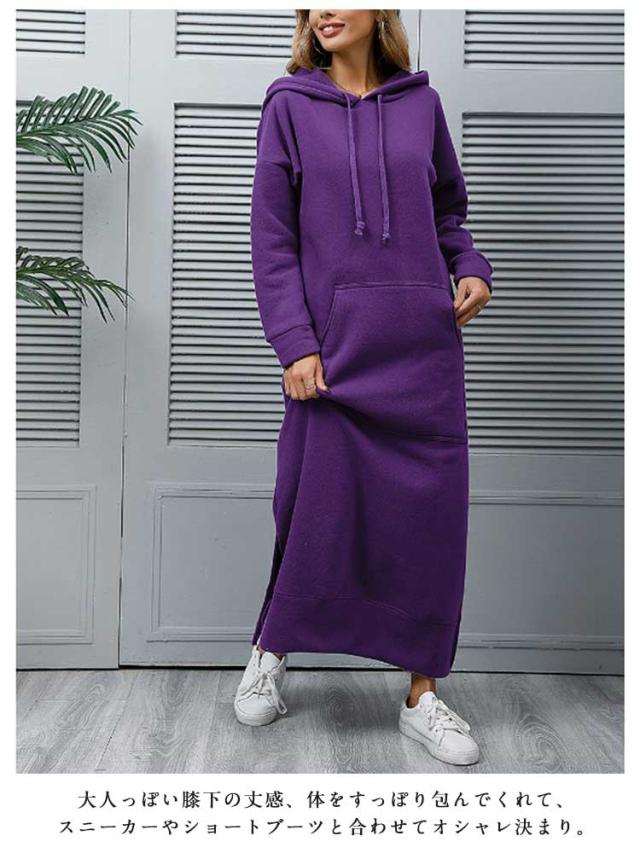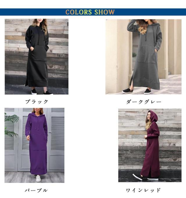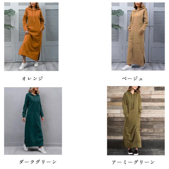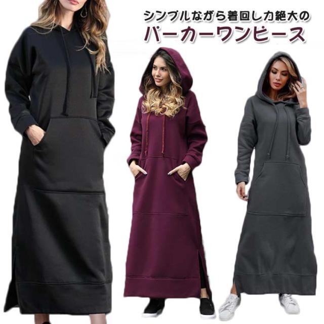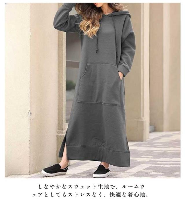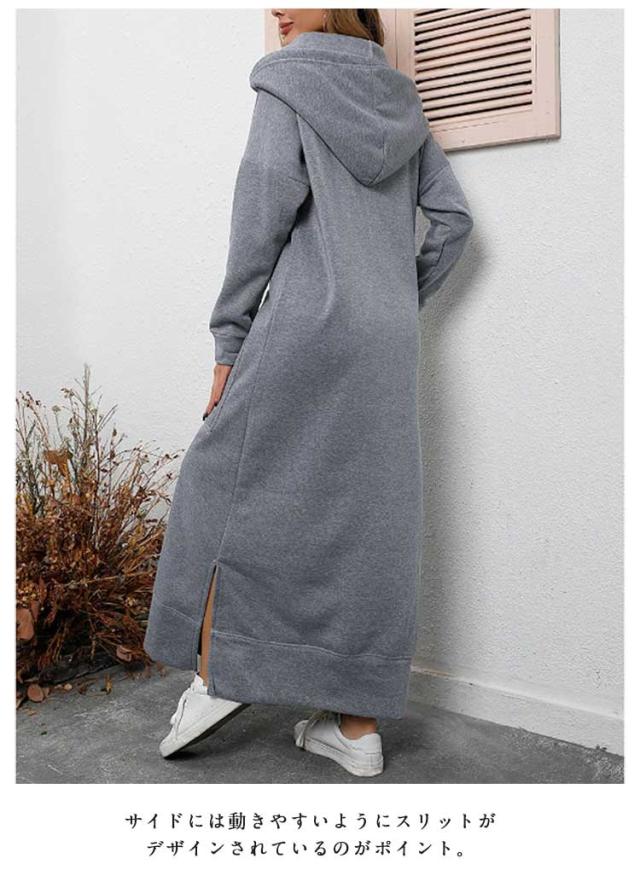 ワンピース パーカー パーカーワンピース フード付き マキシ丈 秋冬 可愛い 無地 体型カバー あったかワンピース レディース パーカーワンピース カジュアル 長袖 ロング スリット入り 無地 ロングワンピース ロングパーカー 冬物