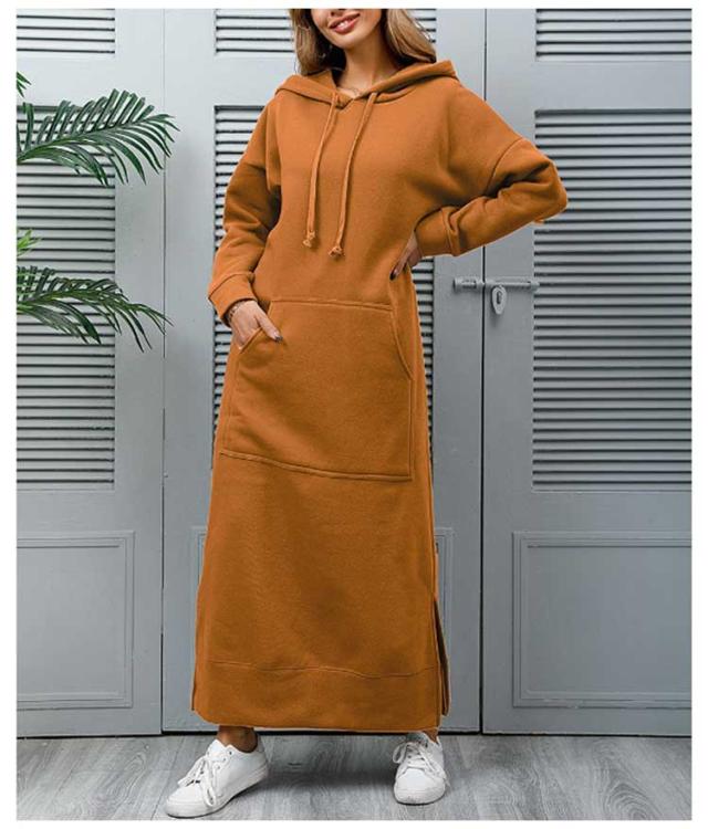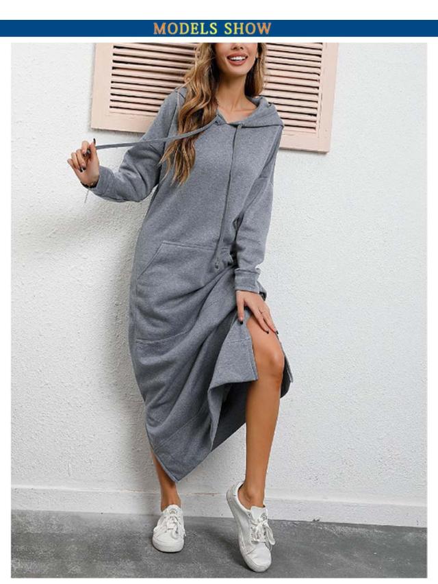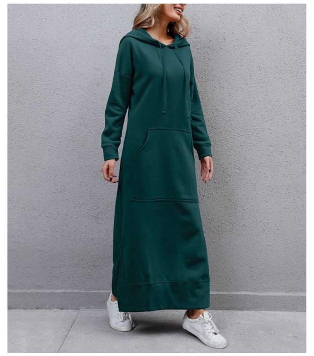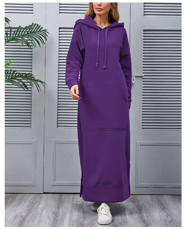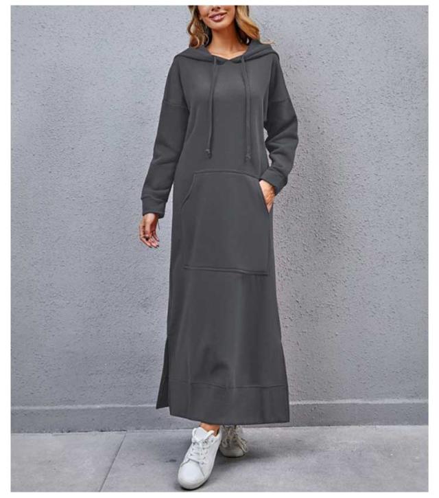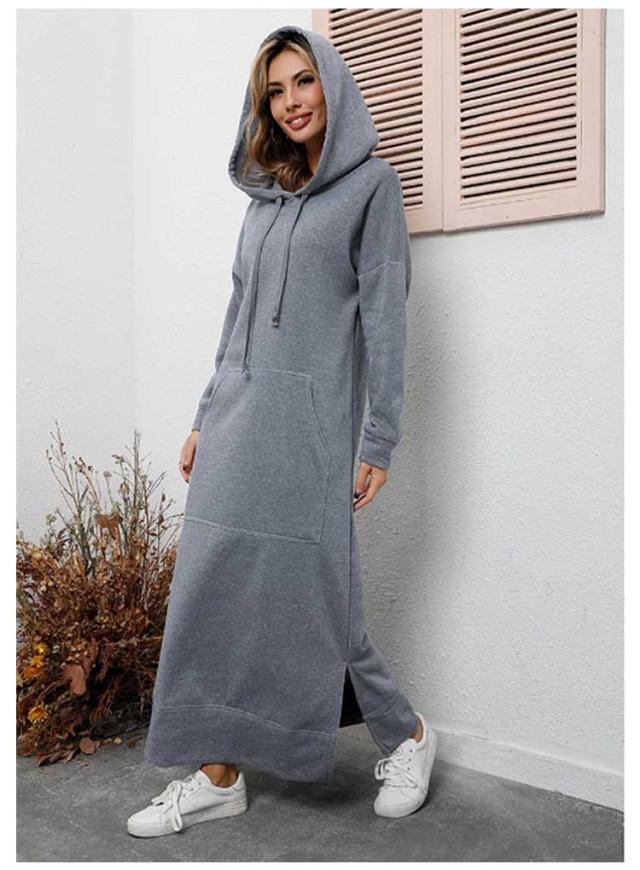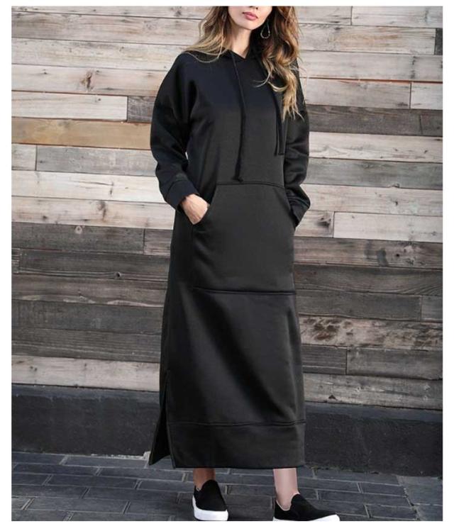 ワンピース パーカー パーカーワンピース フード付き マキシ丈 秋冬 可愛い 無地 体型カバー あったかワンピース レディース パーカーワンピース カジュアル 長袖 ロング スリット入り 無地 ロングワンピース ロングパーカー 冬物
