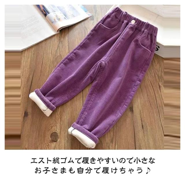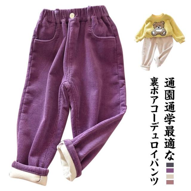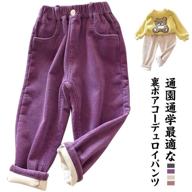 | 通園通学最適な裏ボアコーデュロイパンツ 風合いと穿き心地の良さを兼ね備えた、おしゃれなコーデュロイパンツ。 寒い日におすすめ、裏起毛素材を採用する。 独自のシルエットで男の子も女の子も格好よく見えます。 両サイドにポケット付き。 エスト総ゴムで履きやすいので小さなお子さまも自分で履けちゃう♪ | |