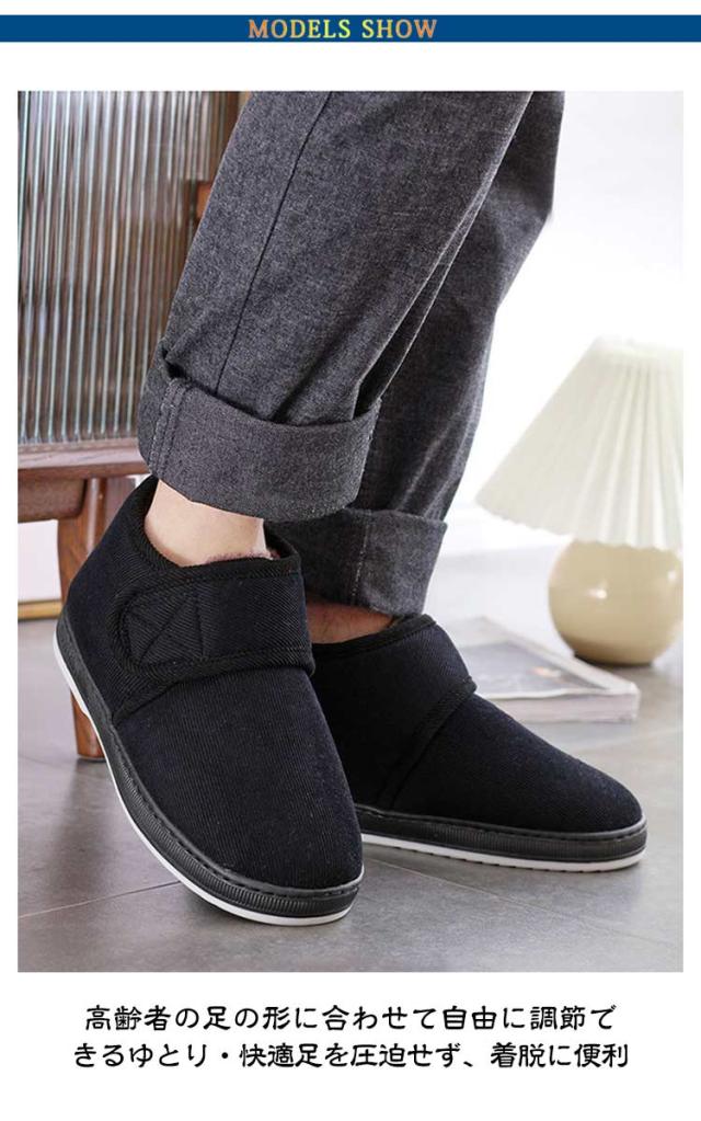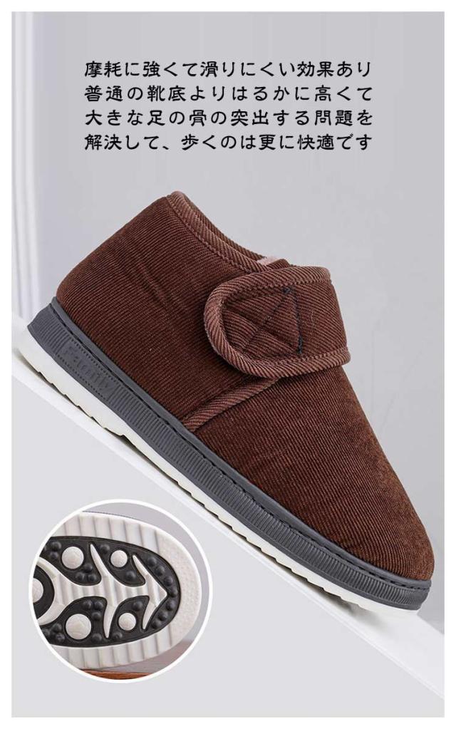 | 軽い・柔らかい・履きやすい・もこもこ裏ボア防寒靴 窮屈感が少ない、ゆったり幅広設計、甲高さんも快適に履くことができるベルクロ(マジックテープ)を採用。 高齢者の足の形に合わせて自由に調節できるゆとり・快適足を圧迫せず、着脱に便利。 厚底が湿気を防いで歩くのに疲れない。 靴底にevaクッションで衝撃吸収、快適な穿き心地で、足が疲れず、足が痛くない 裏地部分は暖かいボアで肌に優しく密着し、暖かくて快適、毛が抜けない 折れにくい柔軟性を強化するので、長い時間歩いても疲れない。 摩耗に強くて滑りにくい効果あり、普通の靴底よりはるかに高くて、大きな足の骨の突出する問題を解決して、歩くのは更に快適です。 室外・室内にも使いやすい1足です。 高齢者の方に大人気の商品、敬老の日、誕生日、クリスマスの贈り物としてもお勧めです。 | |