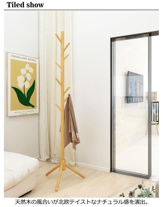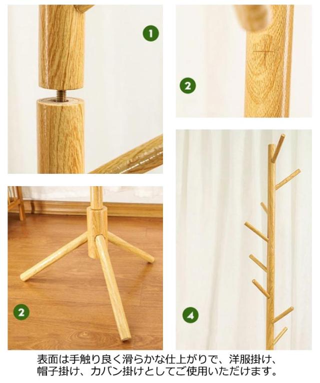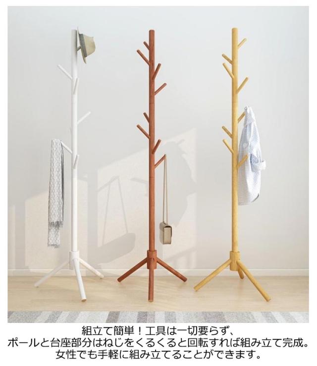 | 8本のフックは丸みを帯びていて、かわいらしいデザイン。 天然木の風合いが北欧テイストなナチュラル感を演出。 表面は手触り良く滑らかな仕上がりで、洋服掛け、帽子掛け、カバン掛けとしてご使用いただけます。 組立て簡単!工具は一切要らず、ポールと台座部分はねじをくるくると回転すれば組み立て完成。 女性でも手軽に組み立てることができます。 生活に不可欠なコートハンガーです。 部屋、リビング、玄関など場所をとらないので、どこでも収納できます。 使わないときは分解するのも簡単です。 | |