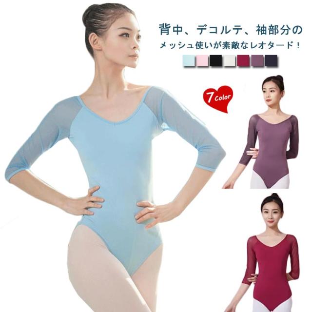 透け感 無地 レオタード 大人 大人 衣装 バレエ 7分袖 レディース 練習用 カラー豊富 スカートなし 女性 レオタード バレエ用品 ダンス 可愛い きれいめ 練習着 ストレッチ 伸縮 発表会 ジュニア 大きいサイズ ストレッチ 通気 レオタード シンプル 送料無料 ギフト