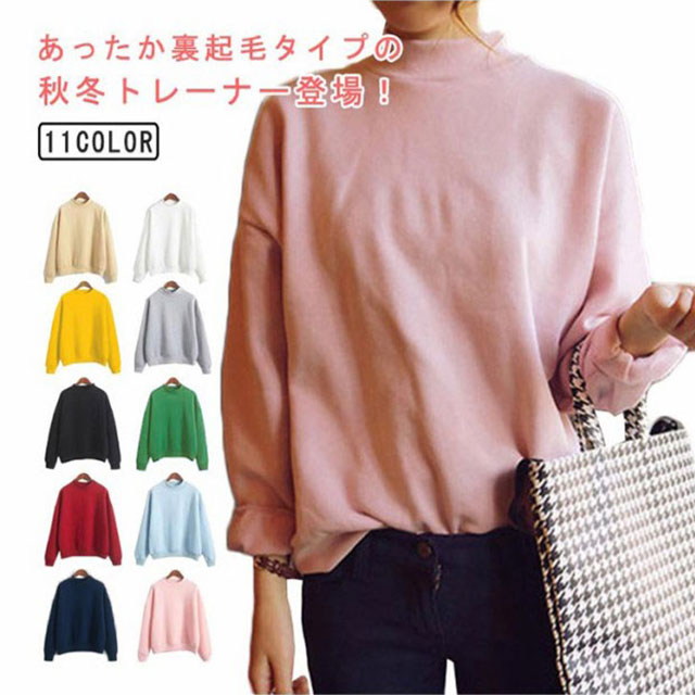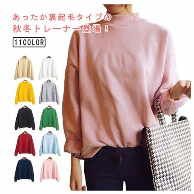 スウェット トレーナー レディース 裏起毛 ハイネック 裏起毛スウェット 秋冬 暖かい おしゃれ 裏起毛トレーナー レディースファッショントレーナー 大きいサイズ 重ね着 無地 シンプル カジュアル 長袖 トップス あったか プレゼント ギフト 送料無料