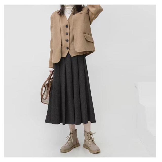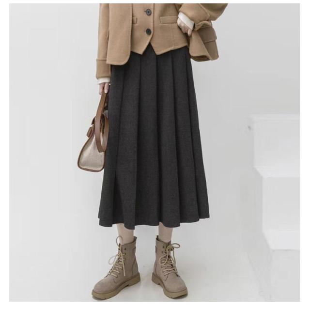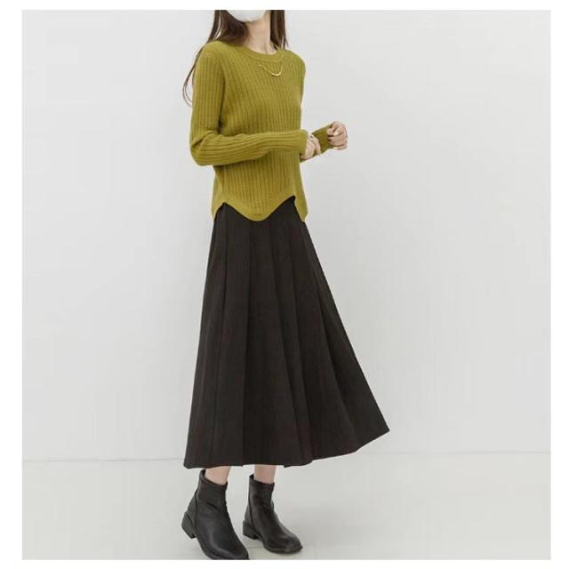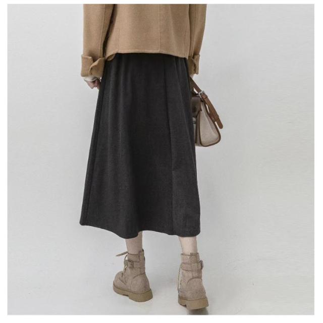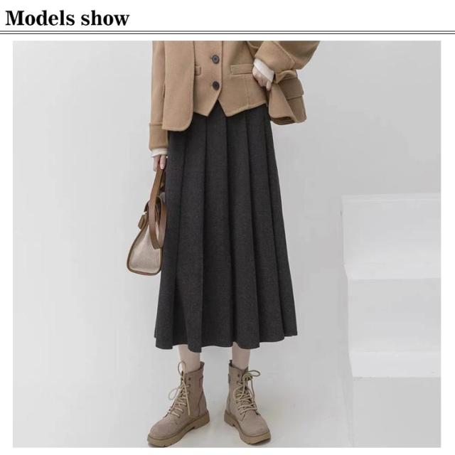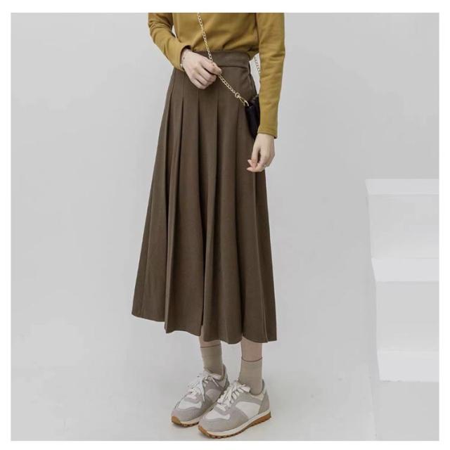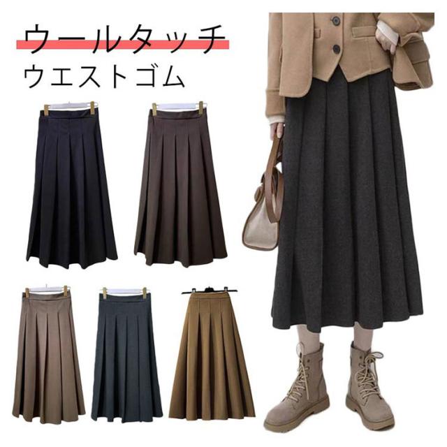 太めプリーツ ロング丈 スカート プリーツ プリーツスカート 太め レディース ボトムス ロングスカート ウールタッチ 暖かい ロング マキシスカート フレア ゴム ウエストゴム Aライン 無地 黒 ブラック 秋 冬 コーヒー ブラウン グレー カーキグリーン
