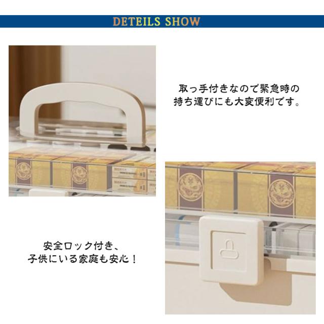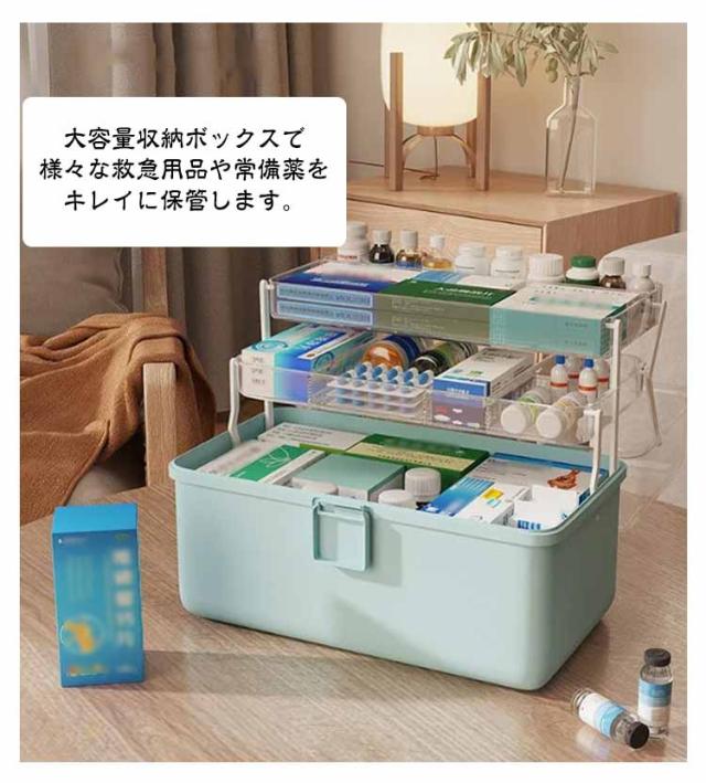 | 使いやすい3段大容量薬箱 大容量収納ボックスで様々な救急用品や常備薬をキレイに保管します。 3段の大容量また仕切り板付き、面倒な積み重ねや、緊急時に薬を見つけるのが難しくなることがもうありません! 高品質なPP素材を採用して、防塵・防湿効果があり長くお使いいただけます。 安全ロック付き、子供にいる家庭も安心! 取っ手付きなので緊急時の持ち運びにも大変便利です。 | |