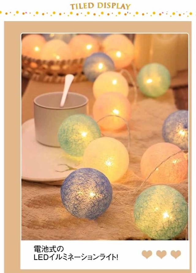 イルミネーション クリスマス 光る LEDイルミネーション カラー綿糸ボール イルミネーションライト お祝い led ハロウィン クリスマス イベント 2m 4m カラー綿糸ボール 6m 10球 20球 40球 電池式 わいい 光るアイテム
