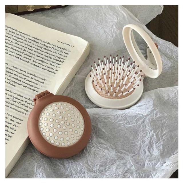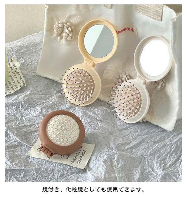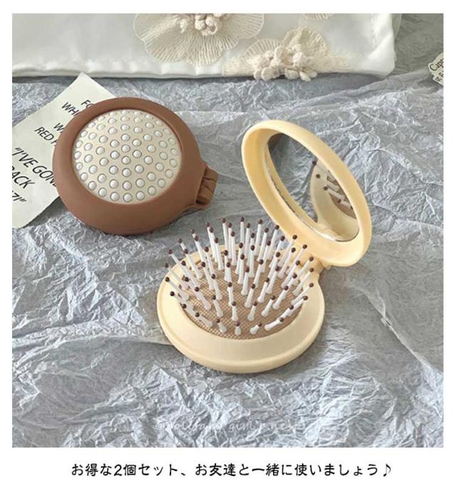 折りたたみヘアブラシ マッサージ ヘアケア ミラー付き 櫛 2個セット コンパクト 鏡付き くし 折りたたみヘアブラシ 旅行 外出 通勤 通学 入院用 出張 子供も使える 折りたたみ 便利 かわいい スタイリング 持ち運び 携帯 シンプル 可愛い