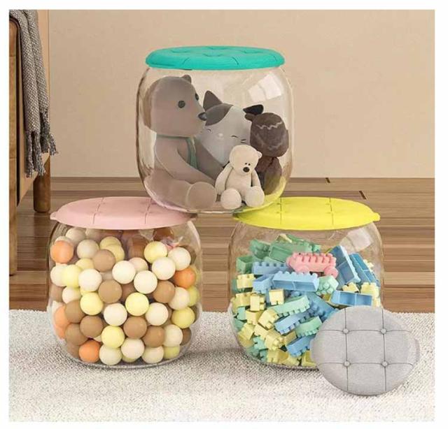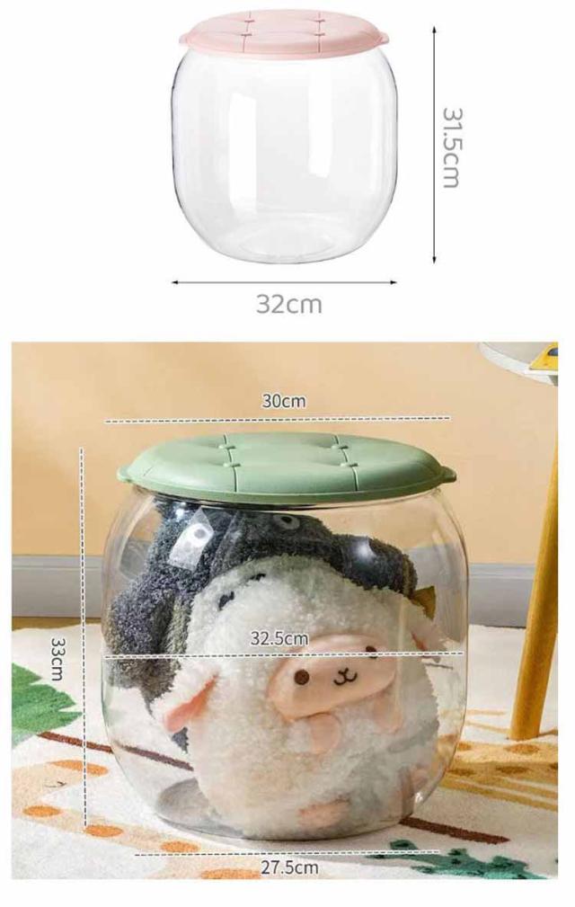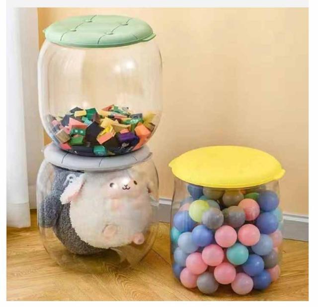 収納スツール 足置き クリア おもちゃ 収納ボックス おもちゃ ぬいぐるみ 大容量 ストレージチェア 収納 イス 踏み台 防塵 椅子 フタ付き 丸型 おしゃれ 子供部屋 小物収納