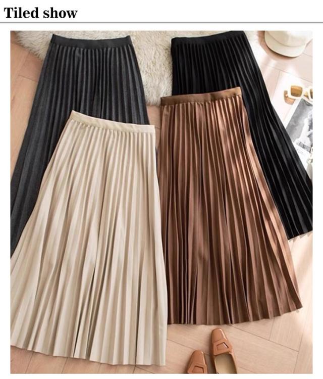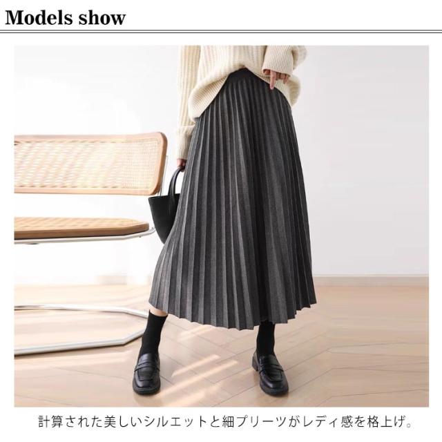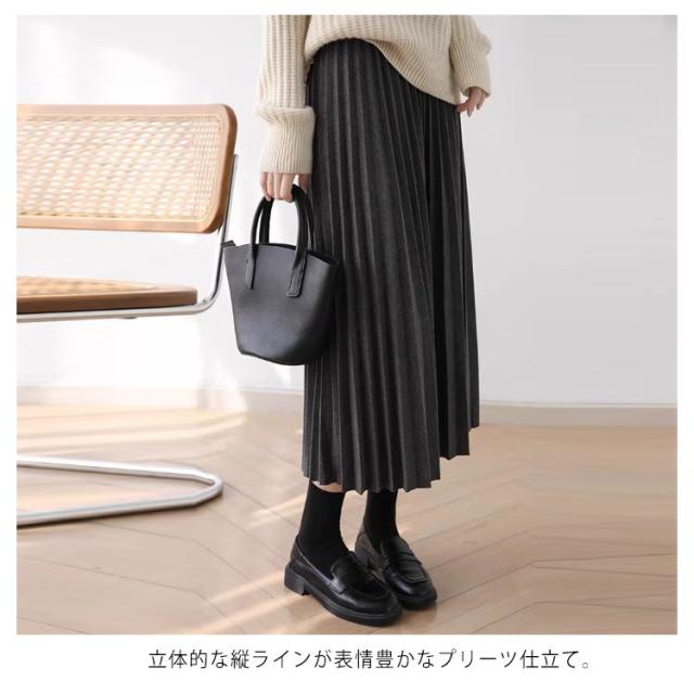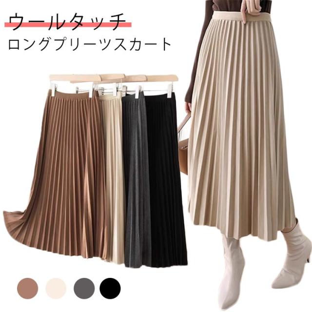 プリーツスカート ロングプリーツスカート ロングスカート レディース プリーツスカート スカート 秋冬 プリーツスカート ボトムス シンプル 無地 ウエストゴム ロング丈 秋冬 体型カバー 送料無料 グレー ブラック コーヒー