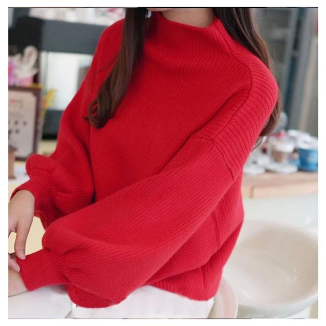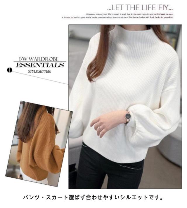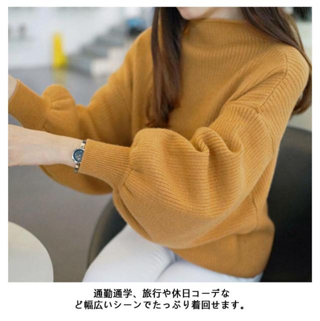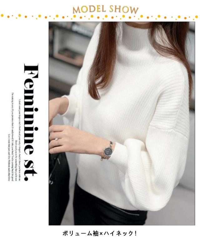バルーンスリーブ バルーン袖 ニット 40代 ニット バルーン袖 長袖 トップス セーター ニットセーター 大きいサイズ ハイネック ぽわん袖 韓国ファッション スリム 30代 リブ きれいめ 50代 M L XL 2XL 3XL