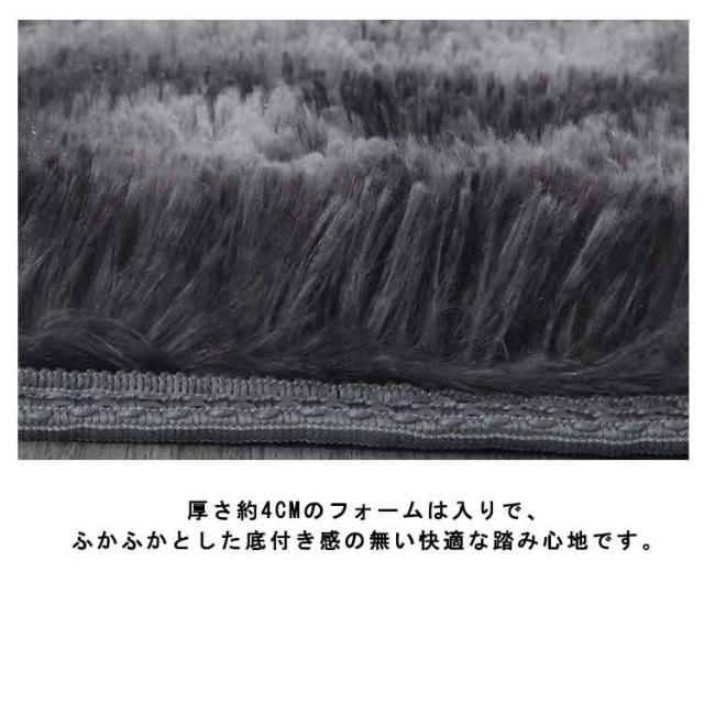 | 触り心地ふわふわの極上タッチ。 厚さ約4cmのフォームは入りで、ふかふかとした底付き感の無い快適な踏み心地です。 高密度設計、ふんわりやわらかくクッション性。 裏面はすべり止め加工付き。フローリングに敷いても滑りにくいラグがずれるのを防ぎます。 | |