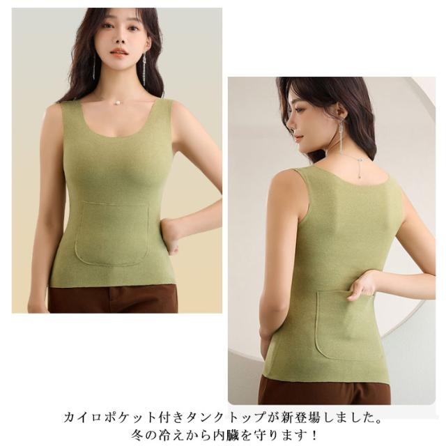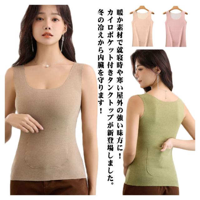 タンクトップ 冬用インナー カイロポケット付き 女性用肌着 インナー 両面起毛 あったか レディース 肌着 カイロポケット付き ノースリーブ あったかルームウェア 温活 秋冬 M L XL 2XL