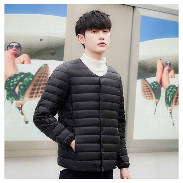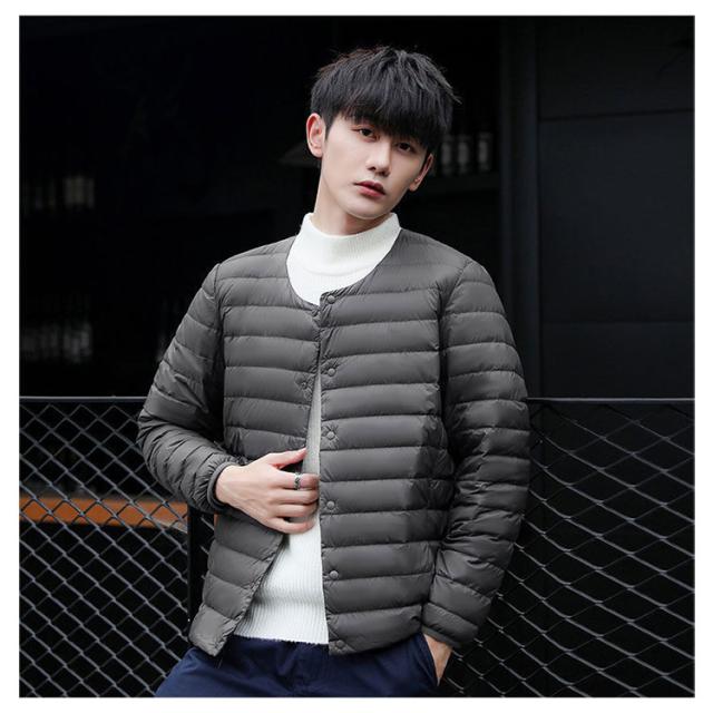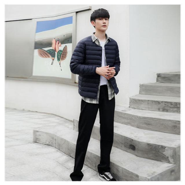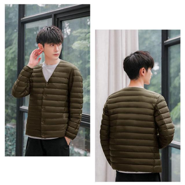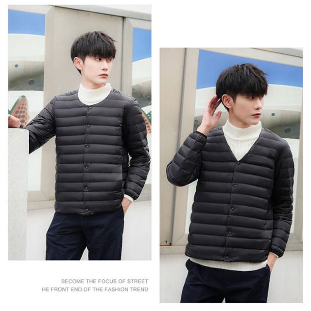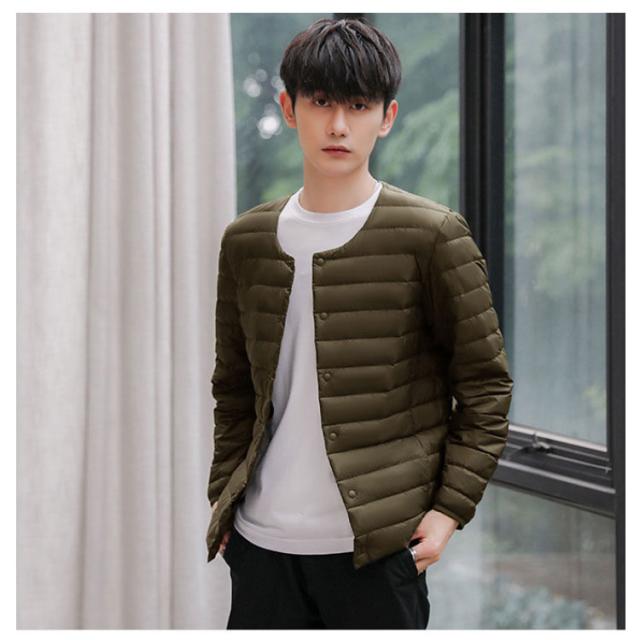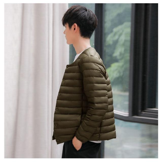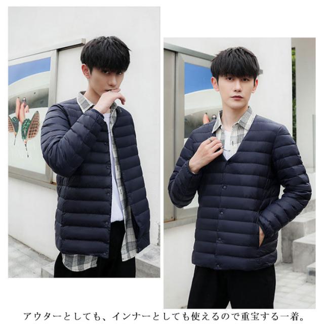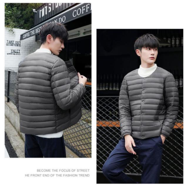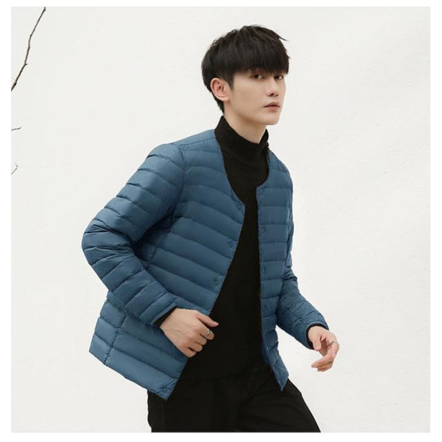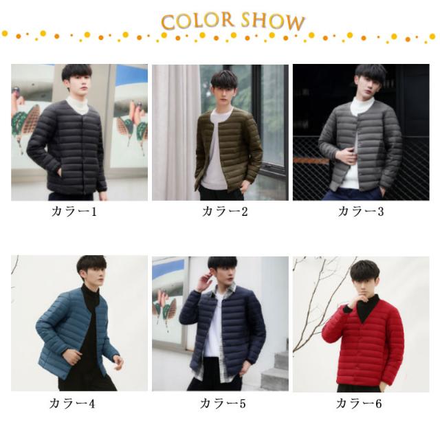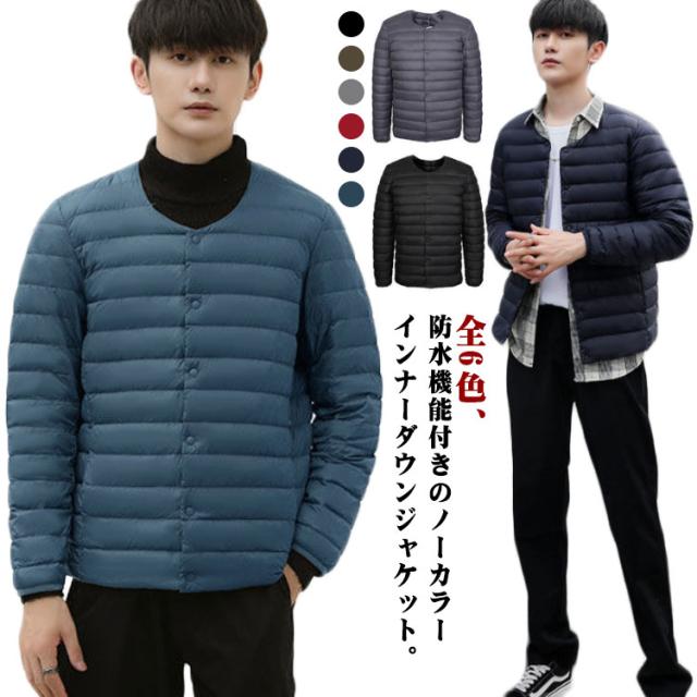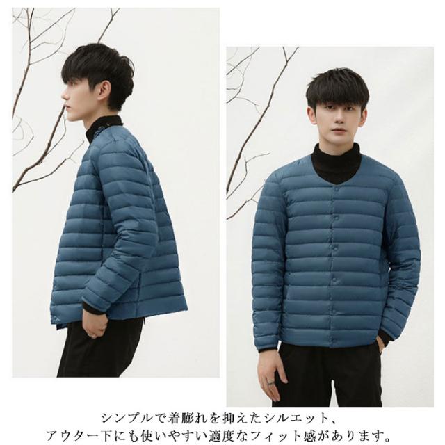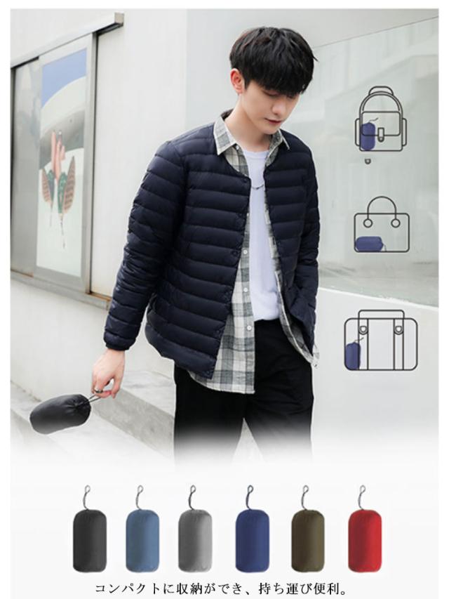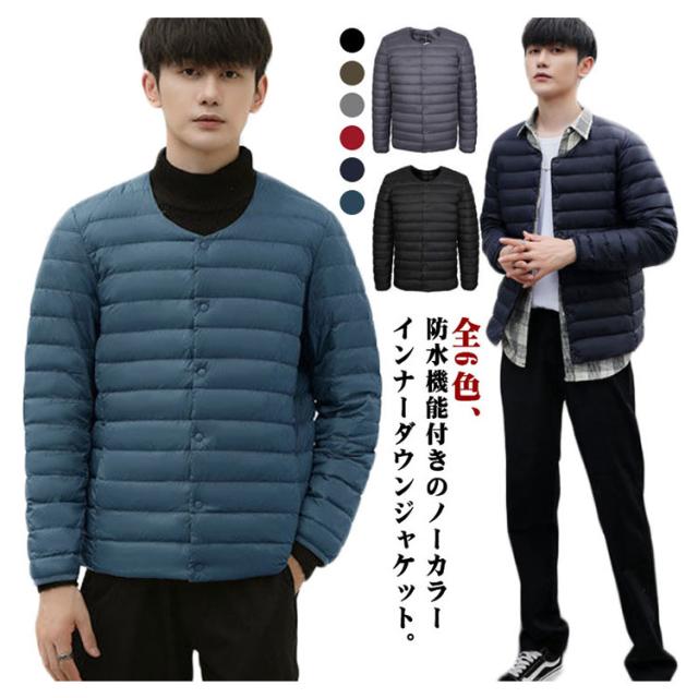 暖かい メンズ ダウンジャケット インナーダウン ダウン 長袖 ノーカラー ライトダウン 保温 冬服 ジップアップ フードなし 細身 ジャケット ダウンジャケット 薄手 軽量 可愛い 中綿ジャケット 防寒服 おしゃれ アウトドア S M L XL 2XL 3XL