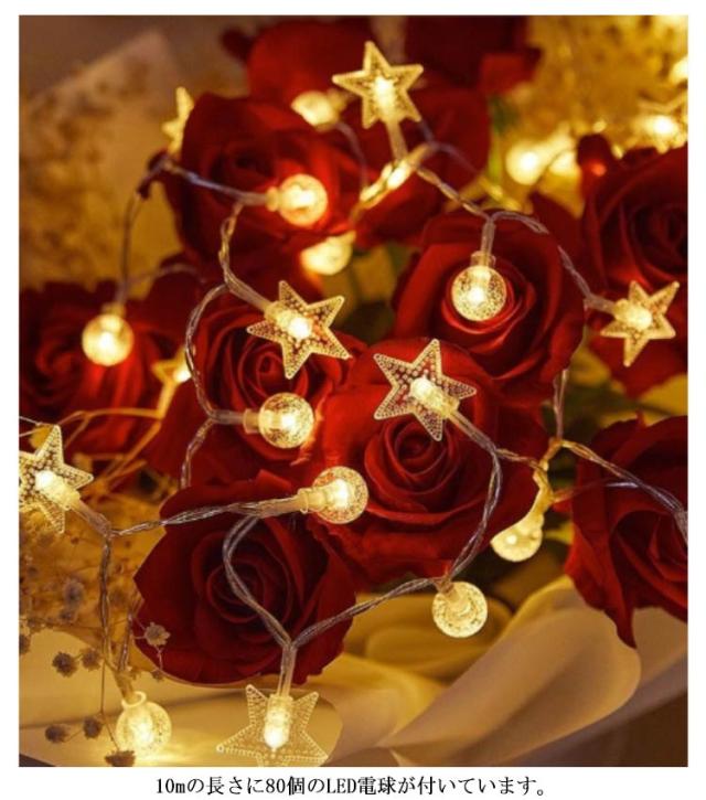 | サイズについての説明 | サイズ:長さ10m 80個電球(電池が付属していません。) ※商品のサイズは手作業で測定させて頂いておりますので、若干の誤差があります。 |
