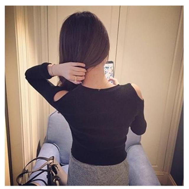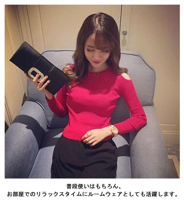 クルーネック 肩出しTシャツ ショルダーカット 肩出し 長袖Tシャツ Tシャツ 可愛い 無地 通勤 インナー レトロ オフショルダー オフショルダー トップス 無地 肩出し 大人 肩出しTシャツ 20代 30代 40代 グレー ホワイト ブラック レッド