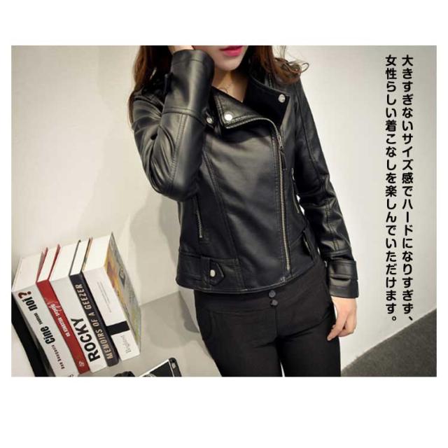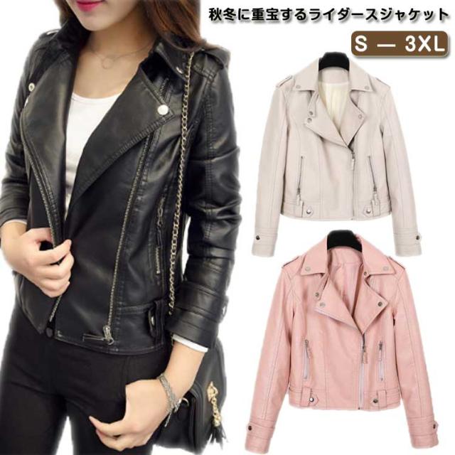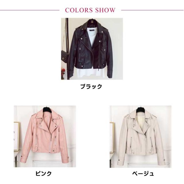 革ジャン ライダース レディース レザージャケット ジップアップ フェイクレザー ショート丈 ジャケット ジャンパー バイクジャケット スリム 細身 オシャレ きれいめ 秋アウター 秋ジャケット 春