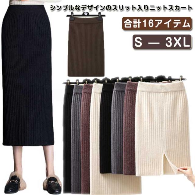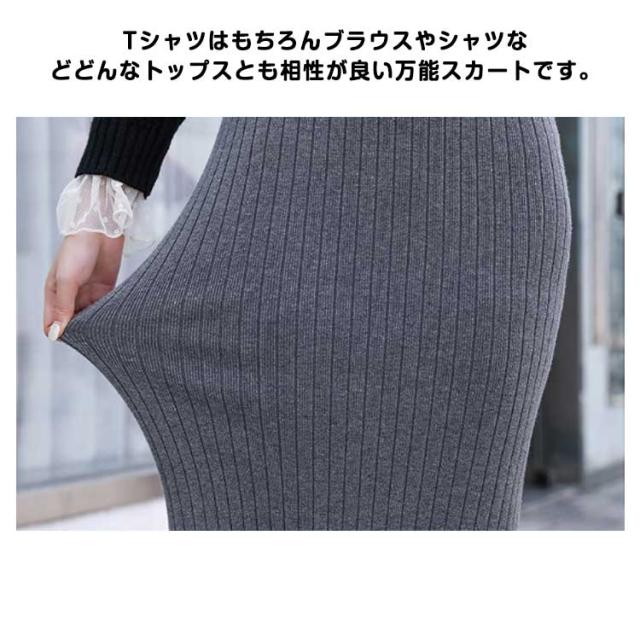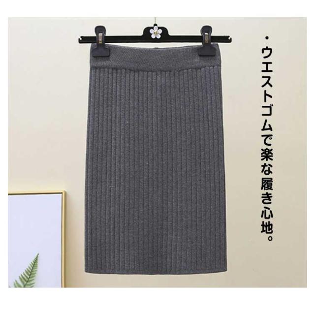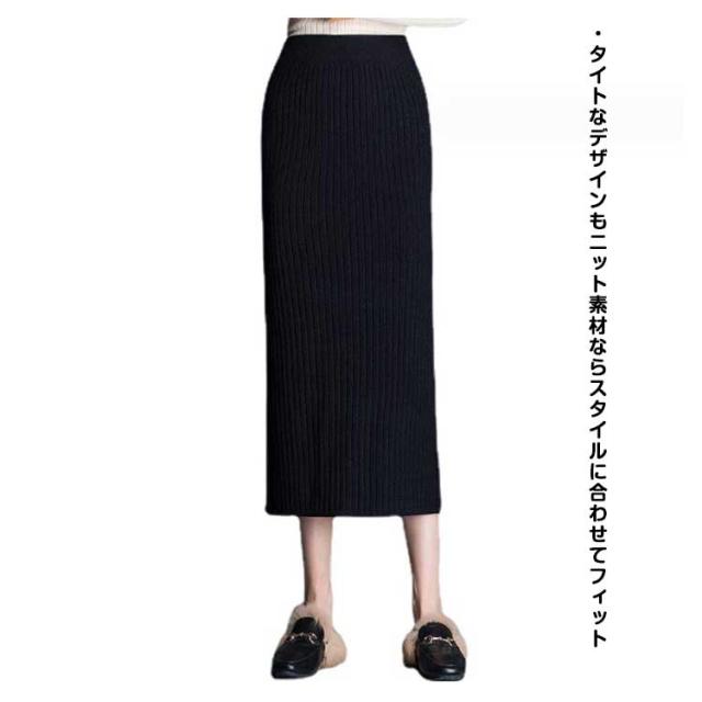 きれいめ スリット タイトスカート レディース ウエストゴム ペンシルスカート ニットスカート ナロースカート 細身 スリム 低身長 膝丈 楽ちん おしゃれ リブ 選べる着丈 通勤 カジュアル 高身長 ニットスカート 春 秋