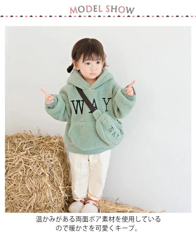 送料無料 ボア パーカー キッズ ボア ふわふわ もこもこ 裏起毛 裏ボア プルパーカー 子供服 バッグ付き パーカー フード トップス 女の子 男の子 暖かい あったか ボアパーカー 防寒 保温 子ども服 ロゴ 秋服 秋 冬服 通園 通学 90 100 110 120 130 140 150
