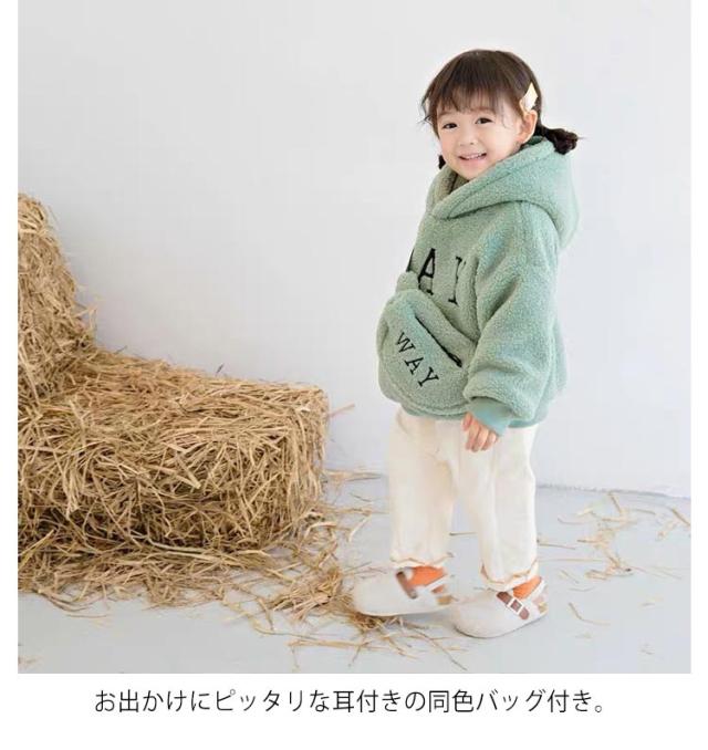 | 同色バッグ付き!保温性抜群のボアパーカー。 温かみがある両面ボア素材を使用しているので暖かさを可愛くキープ。 お出かけにピッタリな耳付きの同色バッグ付き。 通園・通学からおでかけまで幅広く着用いただけます。 | |