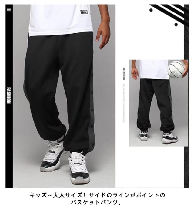 サイドライン ジュニア 大人 バスケットパンツ ロングパンツ 男の子 ジュニア サイドボタン キッズ 長ズボン 裾ボタン バスケットボールパンツ 下 ジャージ 女の子 男性 女性 メンズ レディース バスパン バスケパンツ 送料無料 スポーツウェア