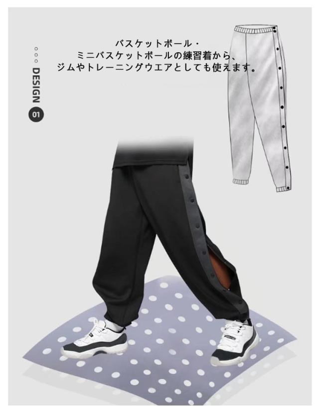 | スナップボタン付きで着替えもラクラク!キッズ〜大人サイズ!サイドのラインがポイントのバスケットパンツ。 柔らかく、通気性も良いスウェット素材を使用。一日中快適に着用できます。 ゆったりとしたシルエットとウエストのゴムがリラックスした履き心地。 バスケットボール・ミニバスケットボールの練習着から、ジムやトレーニングウエアとしても使えます。 休日のカジュアルスタイルにも大活躍してくれます。 | |