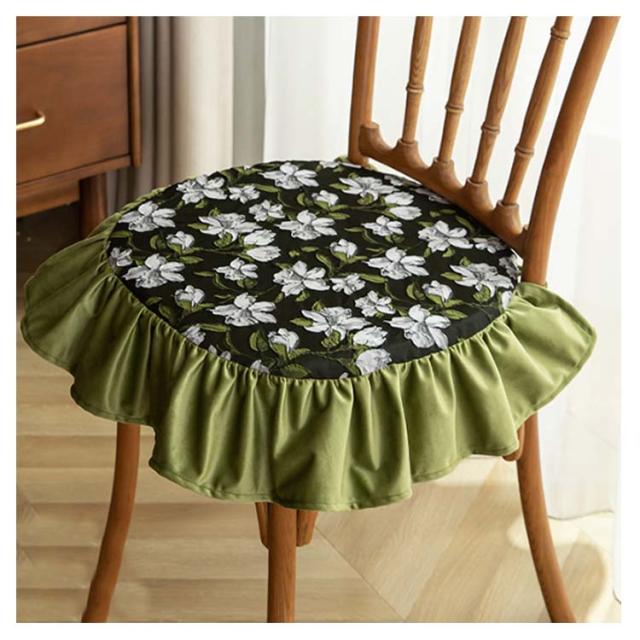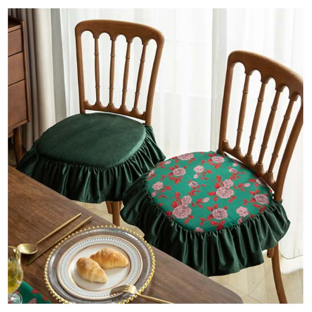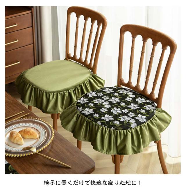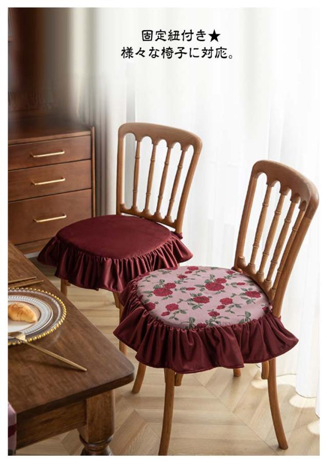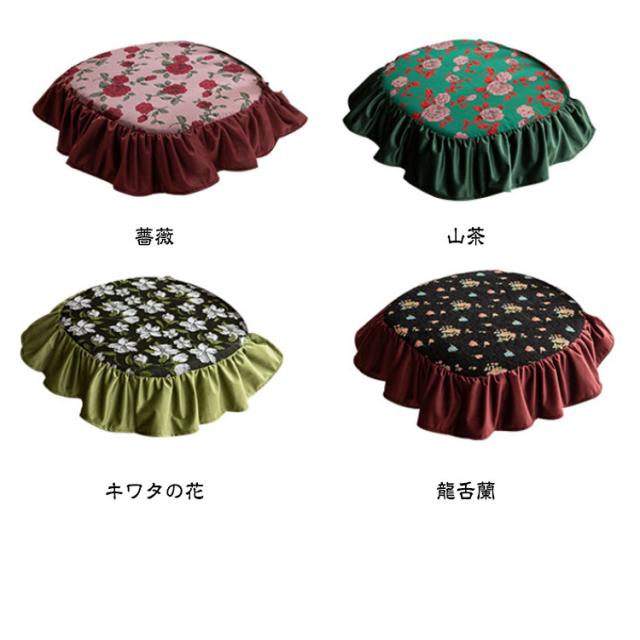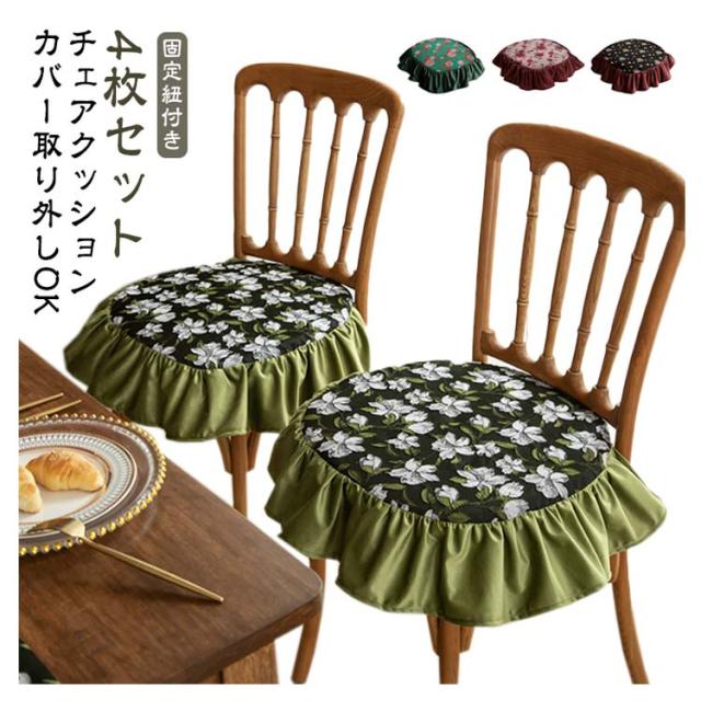 4枚セット 山茶 座布団 チェアクッション 4枚セット 龍舌蘭 花柄 クッション キワタの花 フリル付き 薔薇 ダイニングチェア フラワー 椅子 クッション 紐付き 北欧 洗える クッション イス クッション 座面 座椅子クッション シートクッション チェアパッド