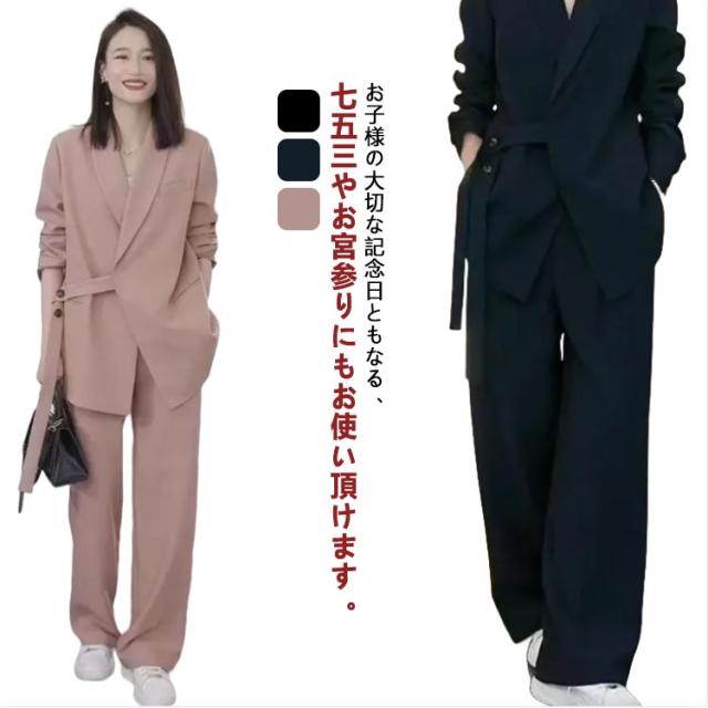 カジュアルスーツ 2点セット レディース 結婚式スーツ パンツ パンツスーツ オフィス オシャレ ジャケット セレモニースーツ ロング スーツ 通勤 就活 OL 着痩せ 入学式 卒業式