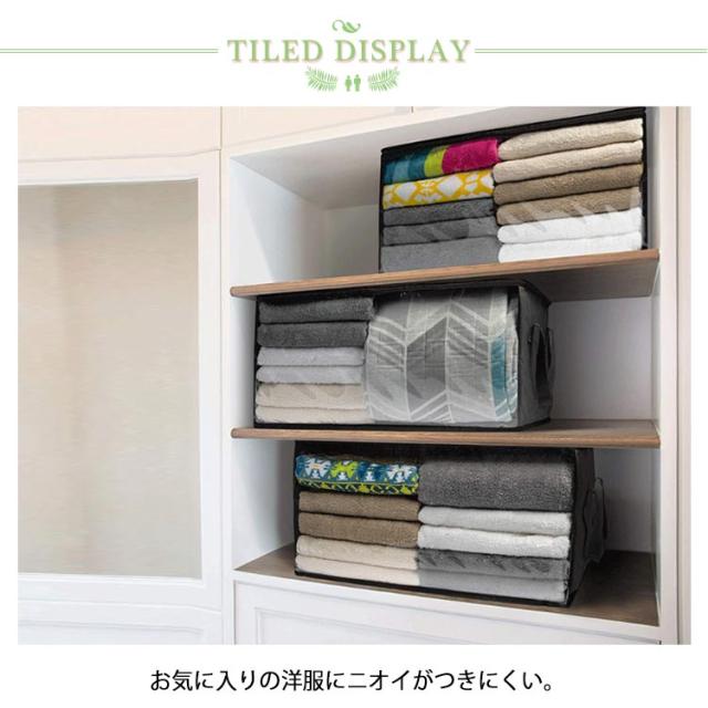 | シーズンオフの衣類の指定席。 お気に入りの洋服にニオイがつきにくい。 高い場所への収納も、前面取っ手付きで出し入れしやすい。 中身がわかる透明窓付き。 ダウンジャケットなどのアウターやパーカー・ニット・セーターなどのかさばる冬服や洋服TシャツやYシャツの春夏服まで幅広く対応します。 | |